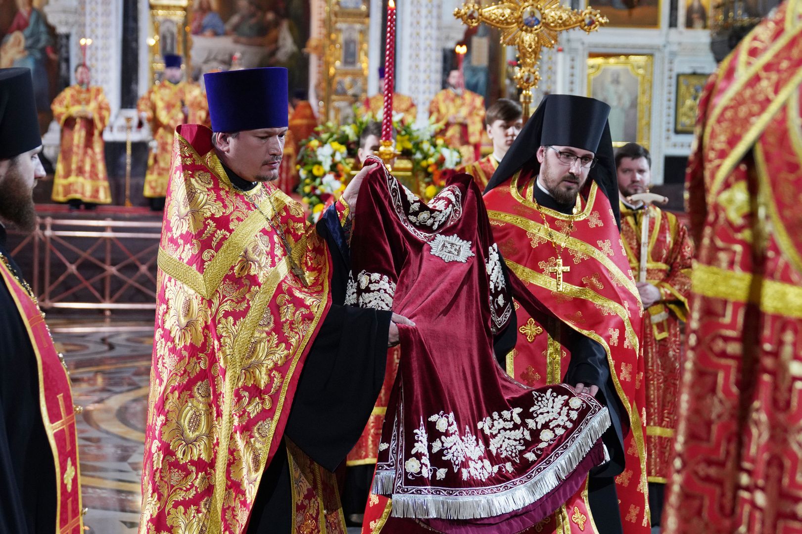 По традиции на великую вечерню было вынесено старинное напрестольное Евангелие времен императрицы Елизаветы Петровны, переданное по завещанию приснопамятного митрополита Питирима (Нечаева) из Иосифо-Волоцкого монастыря в дар Храму Христа Спасителя для особо торжественных праздничных богослужений. Евангелие выносится только дважды в год: на великую вечерню в день праздника Рождества Христова и на Пасхальную великую вечерню.