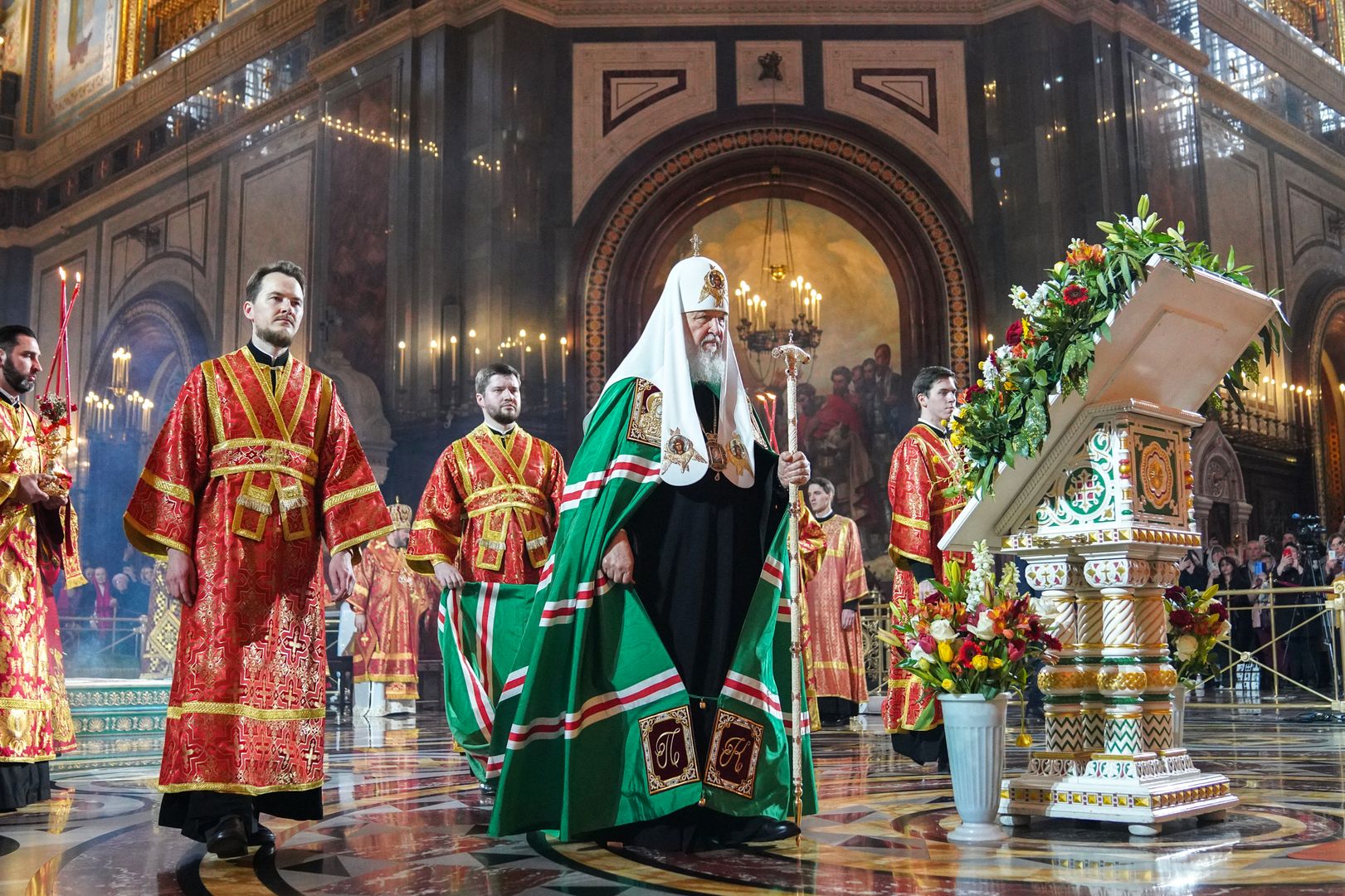 24 апреля, в праздник Светлого Христова Воскресения, Святейший Патриарх Московский и всея Руси Кирилл совершил Пасхальную великую вечерню в кафедральном соборном Храме Христа Спасителя в Москве.