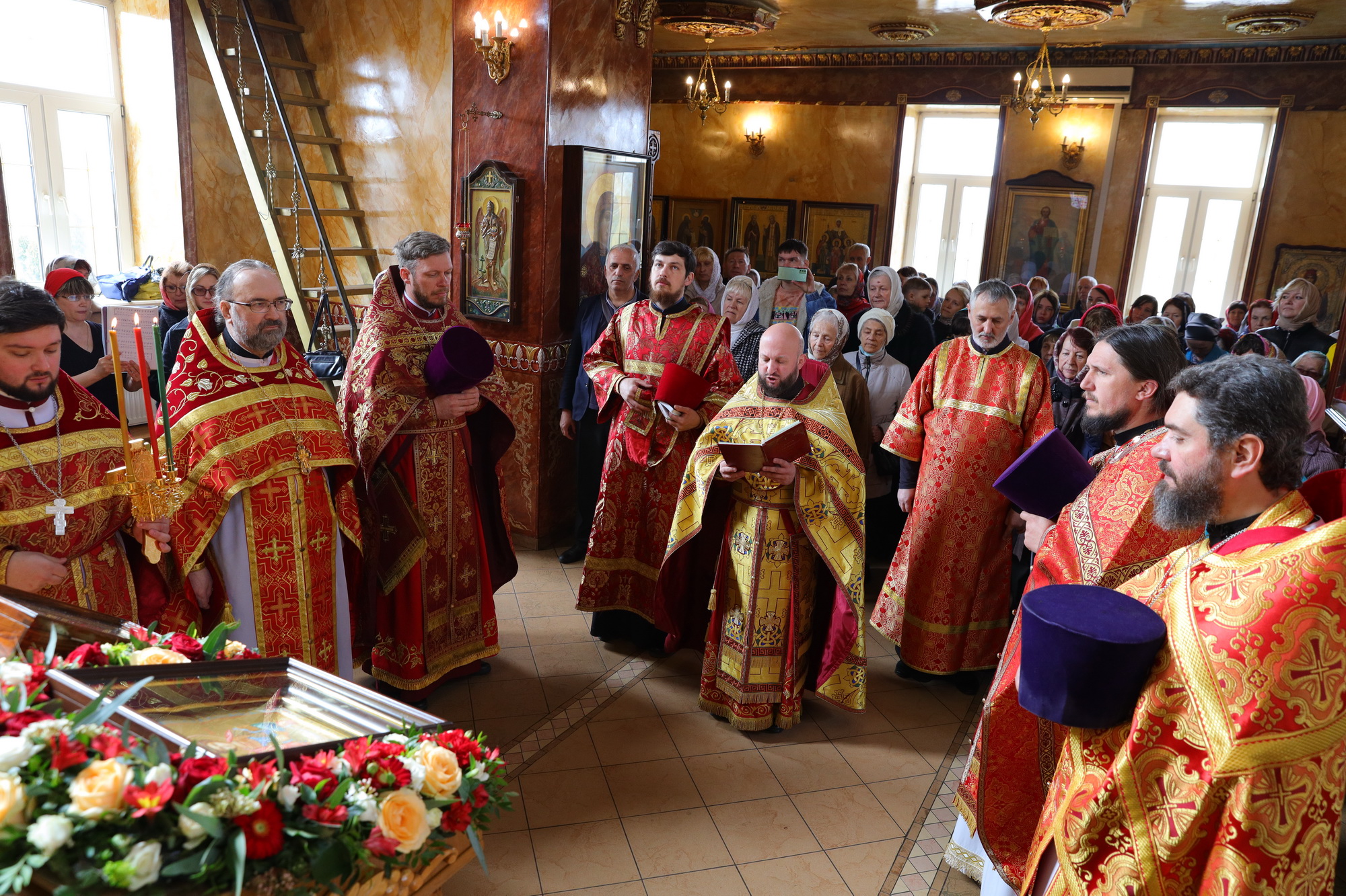По окончании уставного крестного хода пред иконой святого было совершено славление.