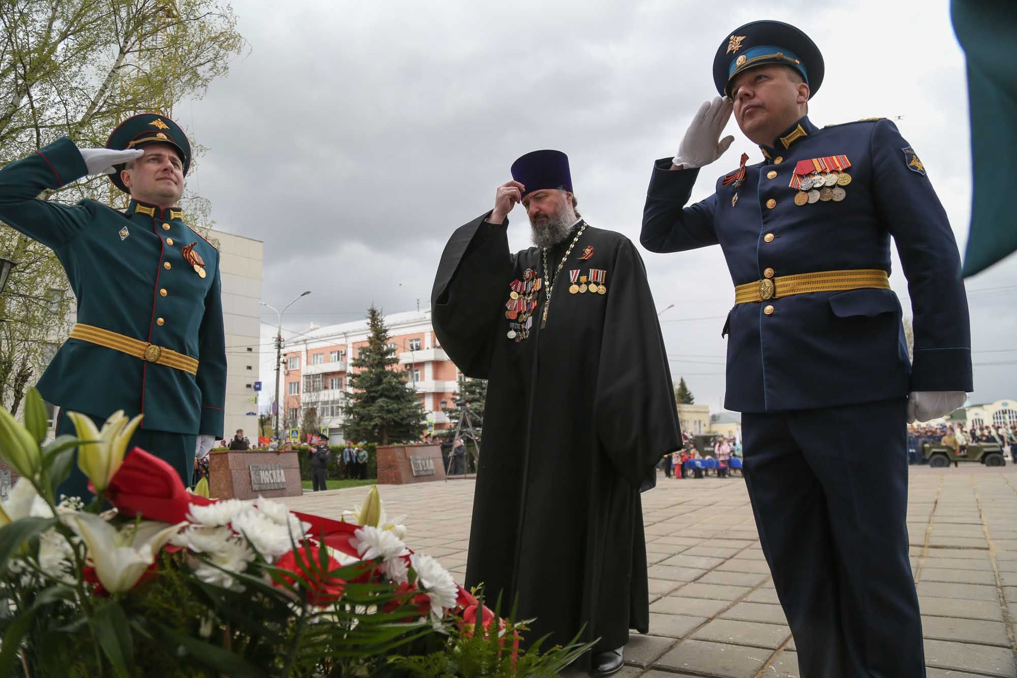 9 мая в Ногинске прошли торжества в честь Дня Победы. На главной площади Ногинска благочинный Богородского церковного округа протоиерей Марк Ермолаев в сослужении духовенства Богородского благочиния совершил благодарственный молебен за дарование Победы в Великой Отечественной войне. На площади Победы собрались ветераны, представители администрации, офицеры армии и военно-морского флота, жители и гости города. По окончании молебна состоялся праздничный митинг. Участников торжества поздравили заместитель председателя правительства Московской области Мария Нагорная, депутат Государственной Думы Амир Хамитов, глава Богородского городского округа Игорь Сухин, ветеран Великой Отечественной войны, почетный гражданин Ногинского района Петр Павлович Саган. Были награждены школьники Богородского округа – победители муниципального конкурса сочинений «День Победы. Моя история». Первое место среди старшеклассников занял ученик 11 класса Православной гимназии имени священномученика Константина Богородского Игорь Руденок. Минутой молчания собравшиеся почтили память павших в Великой Отечественной войне. Корзину с цветами к Обелиску славы возложили глава Богородского городского округа, благочинный Богородского церковного округа, депутаты, ветераны, жители и гости города. Затем состоялся военный парад и праздничная демонстрация. В парадном строю прошли воинские подразделения Ногинского гарнизона. Состоялись показательные выступления представителей 179-го Ногинского спасательного центра МЧС России. Военно-технический музей продемонстрировал автомобили периода Великой Отечественной войны. По завершении парада прошла акция «Бессмертный полк», в которой приняли участие протоиерей Марк Ермолаев, духовенство благочиния, ученики и преподаватели Православной гимназии имени священномученика Константина Богородского. Затем состоялся концерт «Песни победителей», подготовленный Богородским благочинием совместно с администрацией Богородского городского округа, окружным управлением культуры, центром культуры и искусств имени Калиниченко. Перед жителями и гостями города выступил протоиерей Марк Ермолаев, клирик Богоявленского собора г. Ногинска протодиакон Сергий Гайдаш, солист московского театра «Новая опера» Артём Гарнов, сводный хор Православной гимназии имени священномученика Константина Богородского.