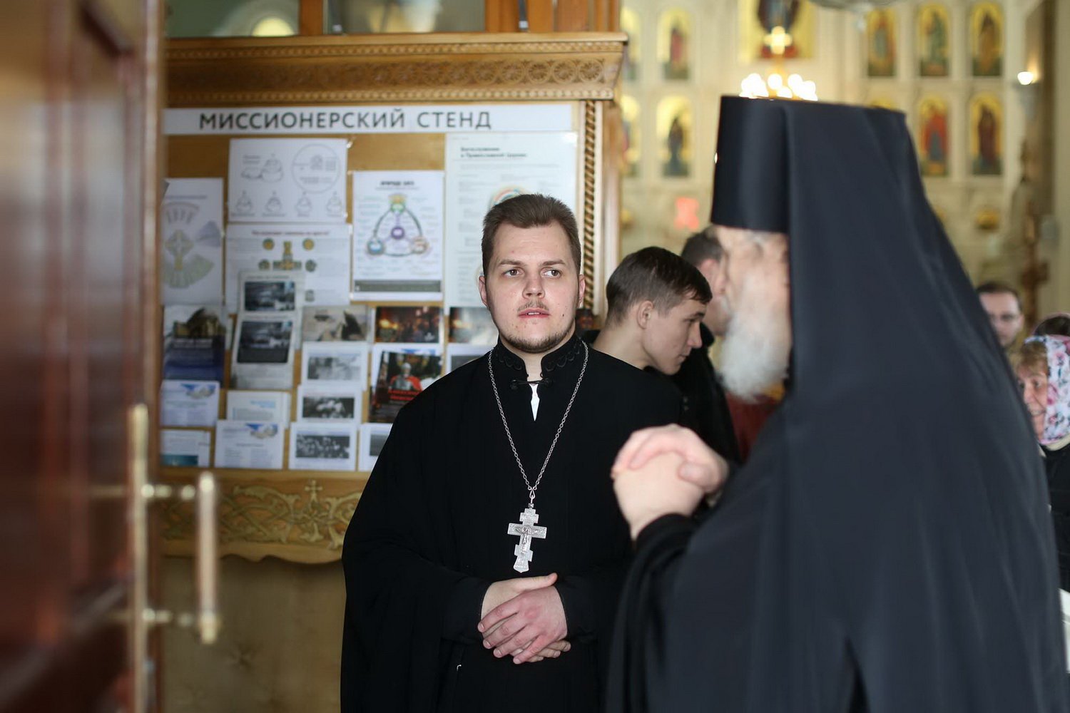 По окончании богослужения отец Максим рассказал Преосвященному Николаю об истории возрождения храма, разрушенного в годы безбожия, и о современной жизни прихода.