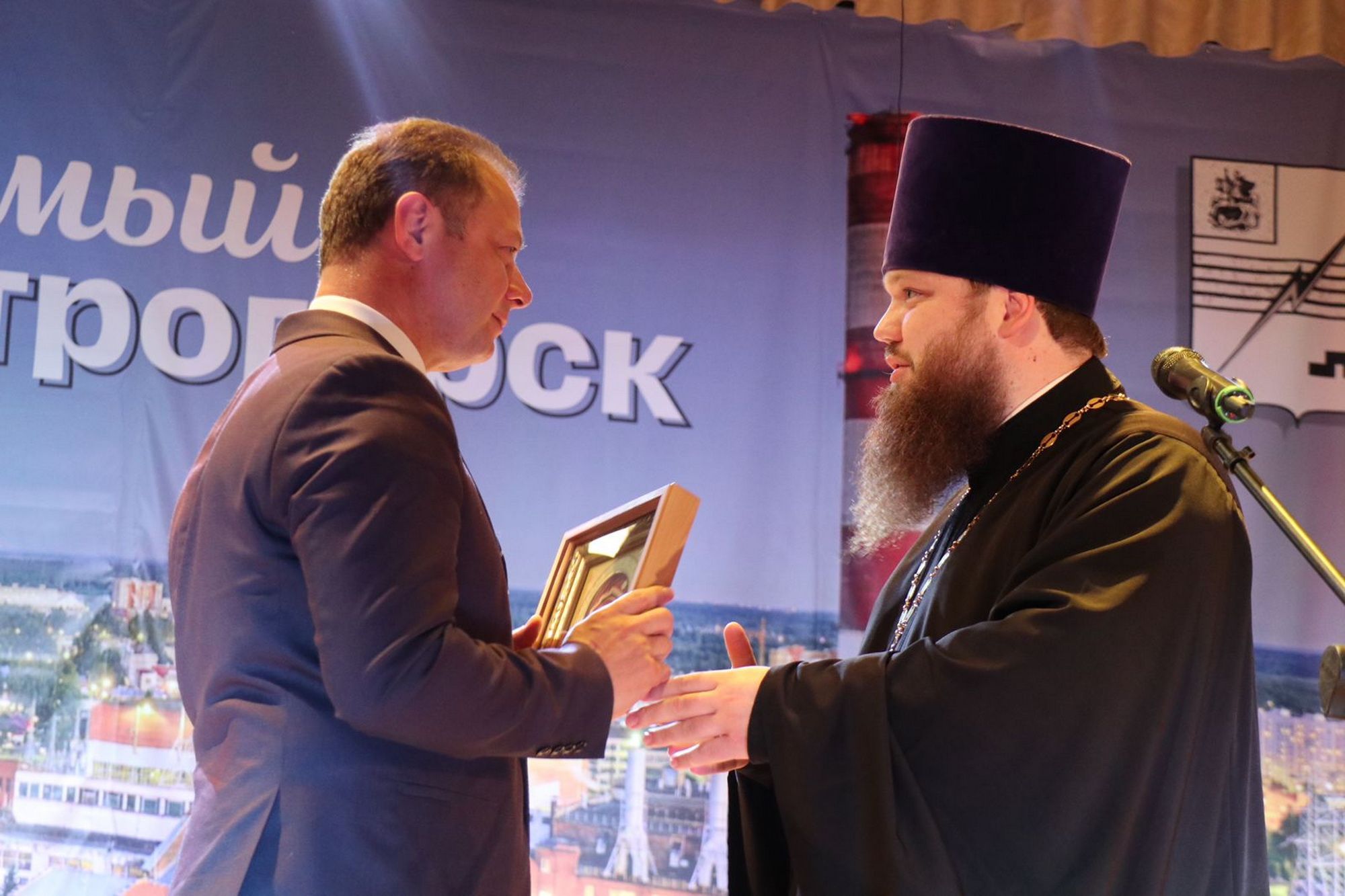 Празднование продолжилось в городском доме культуры, где отец благочинный обратился к присутствующим с приветственным словом.