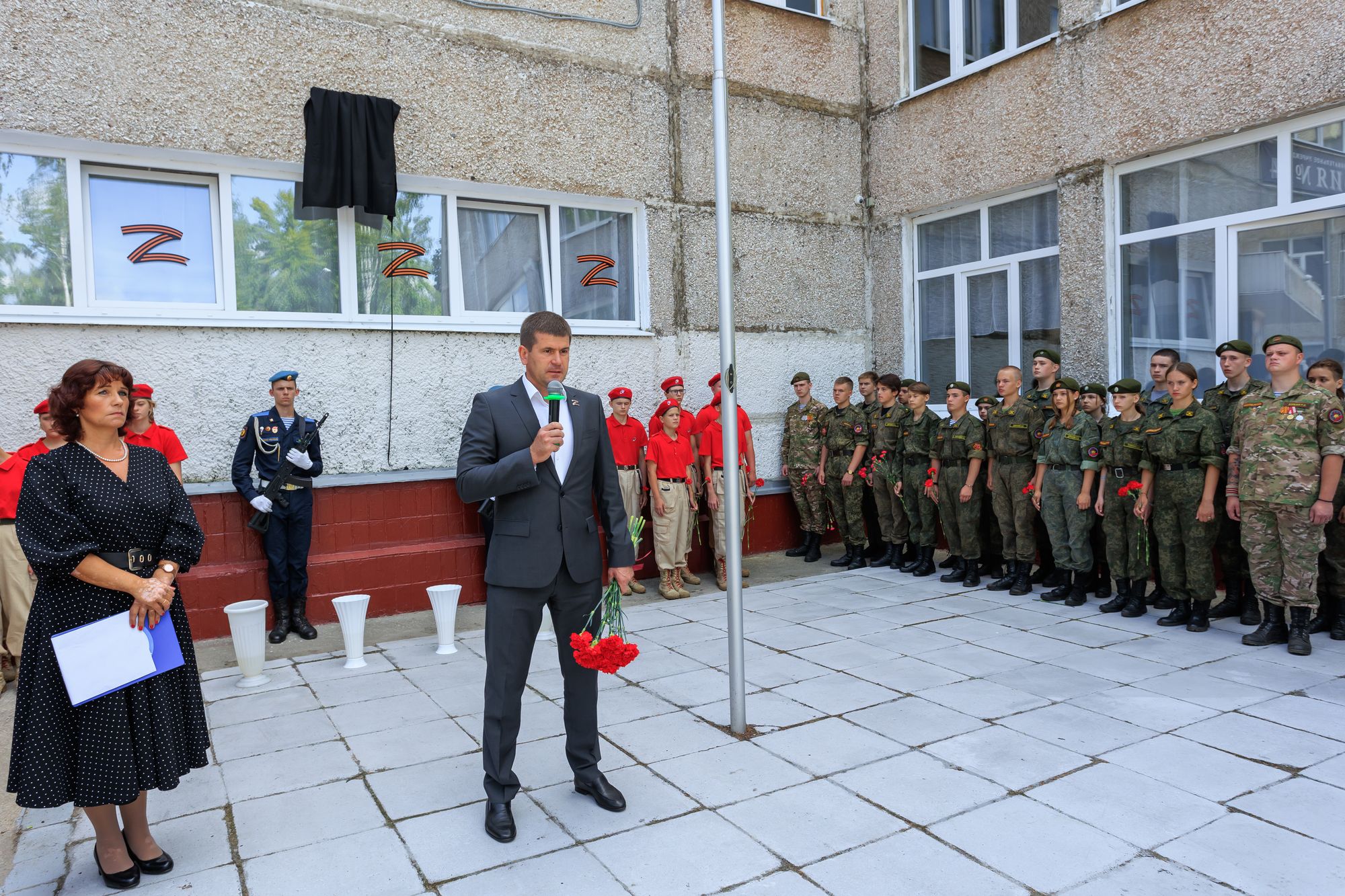 2 августа состоялось открытие памятной доски младшему сержанту Максиму Базанову на здании гимназии №14 г. Орехово-Зуево.