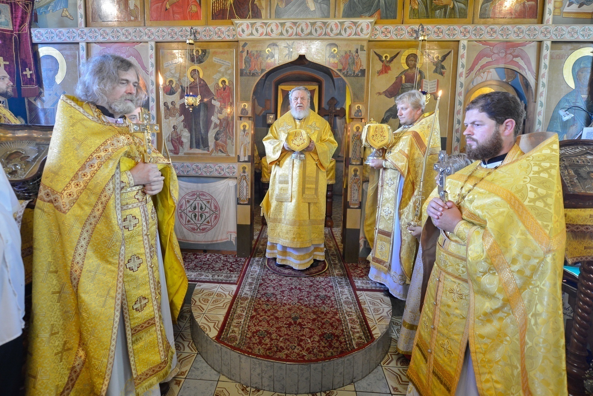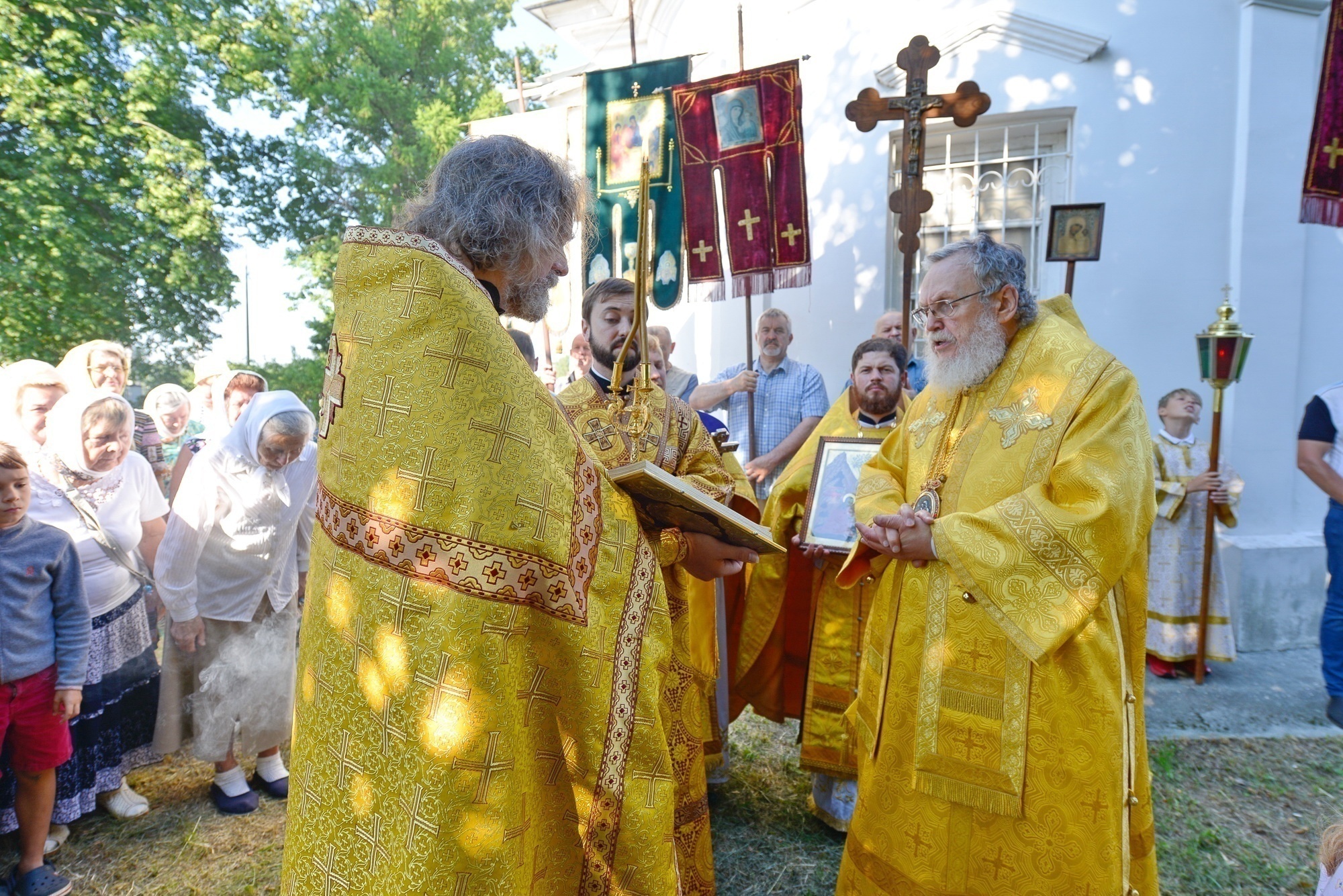 По окончании Литургии и крестного хода были возглашены уставные многолетия, после чего отец настоятель обратился к Владыке Николаю с приветствием и преподнёс ему икону Казанской Божией Матери.