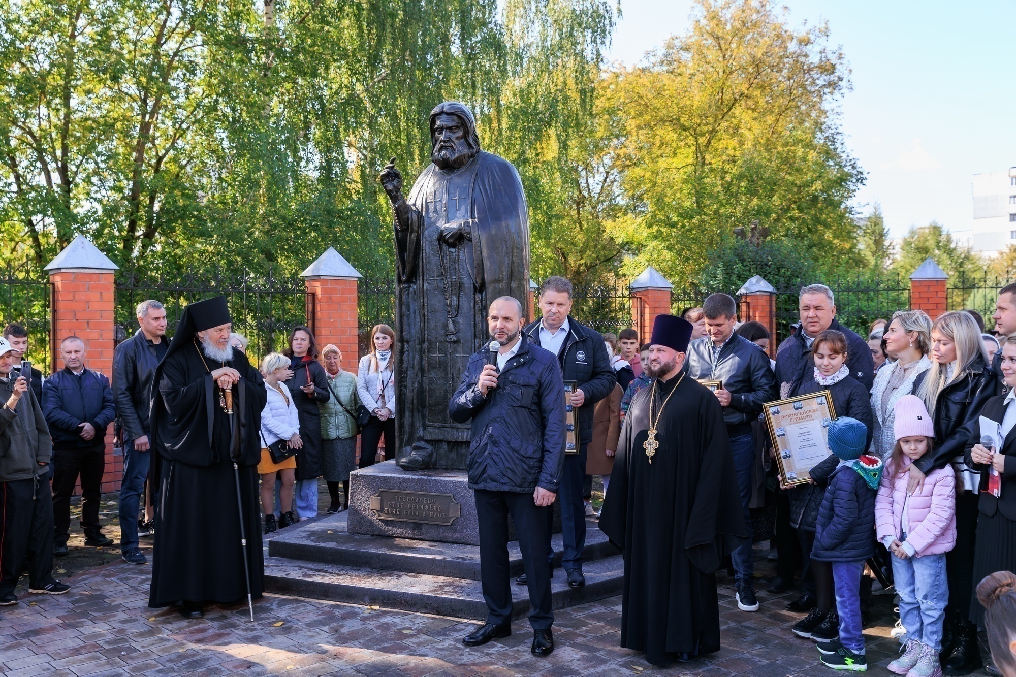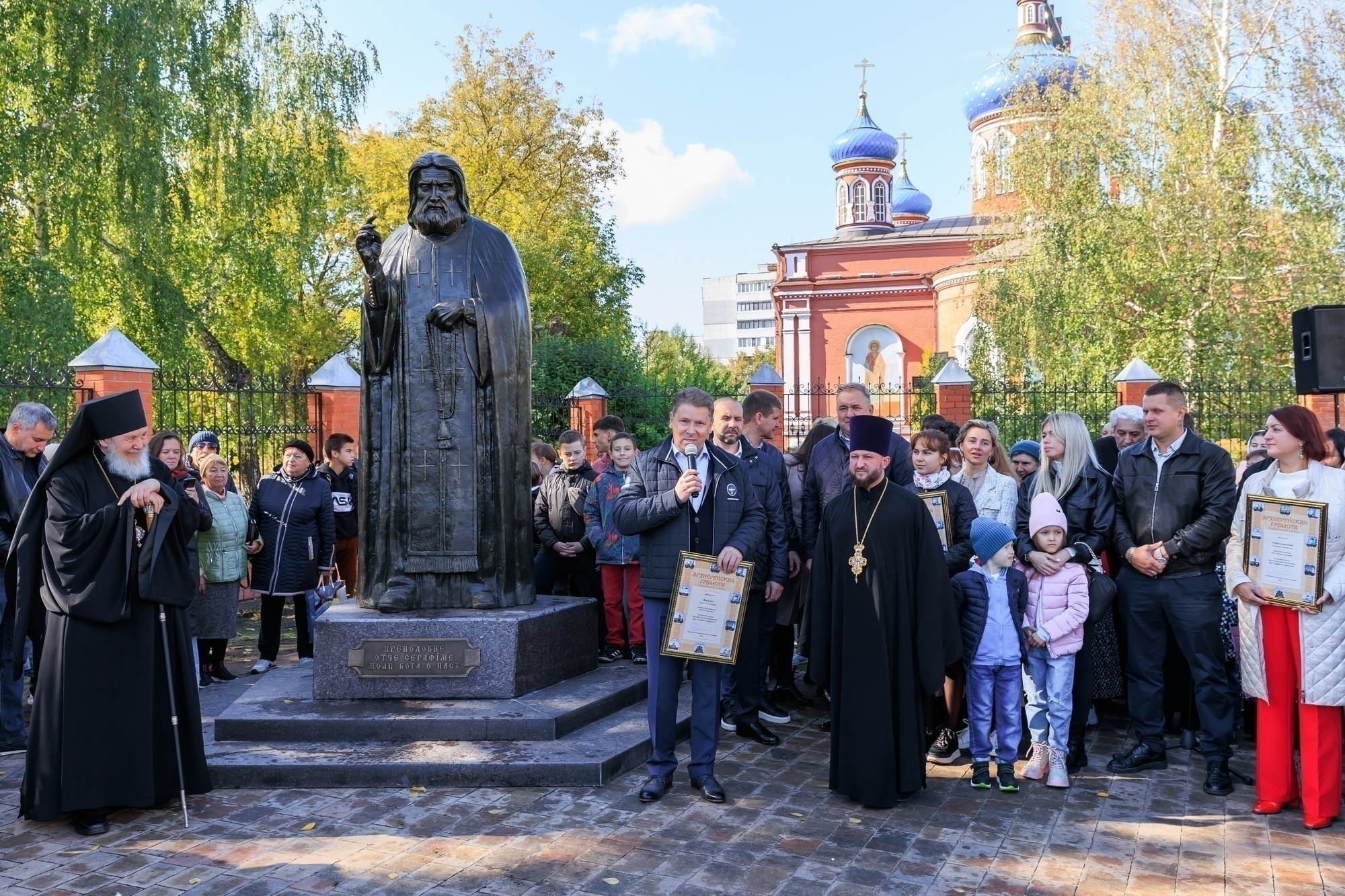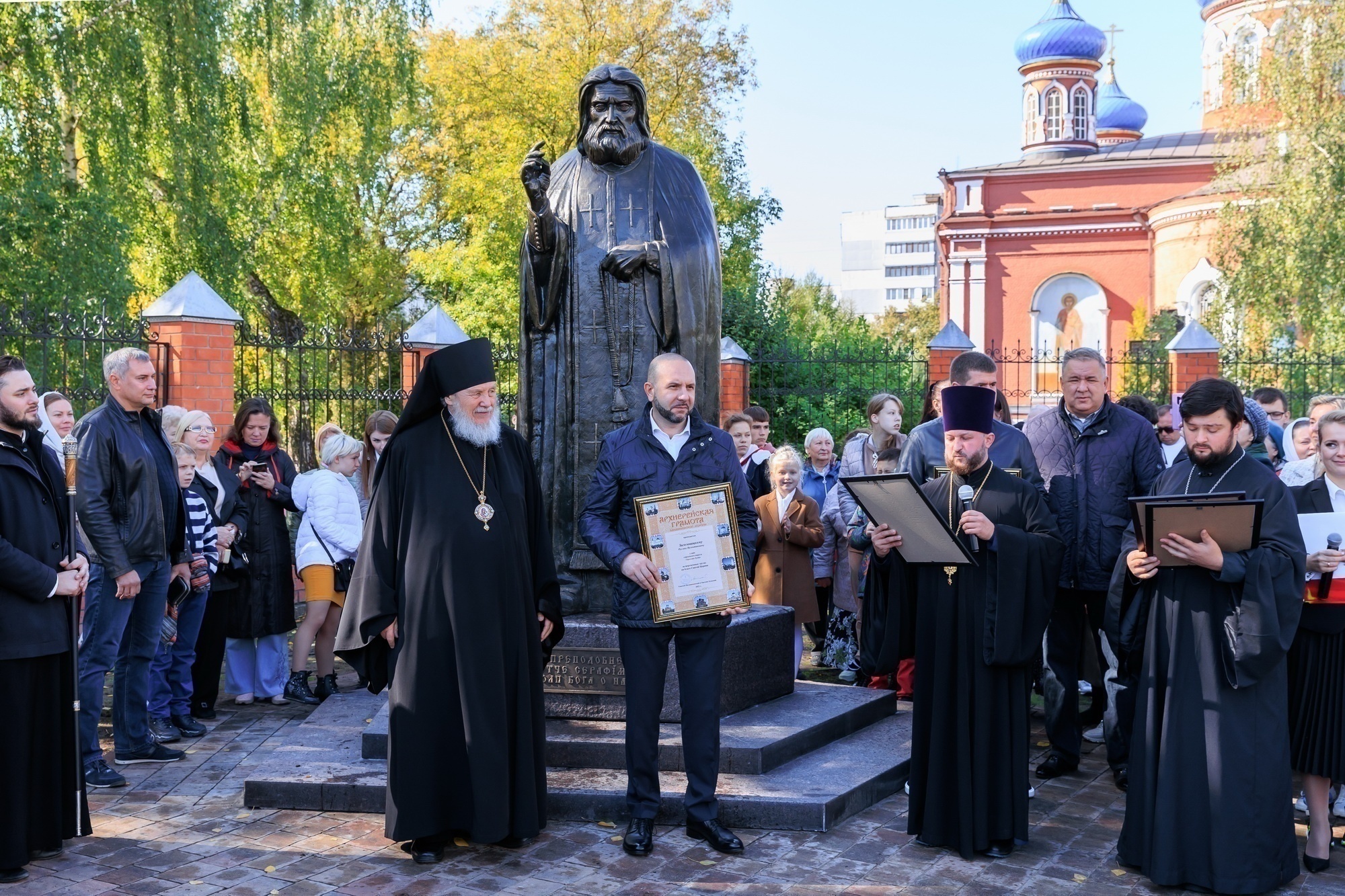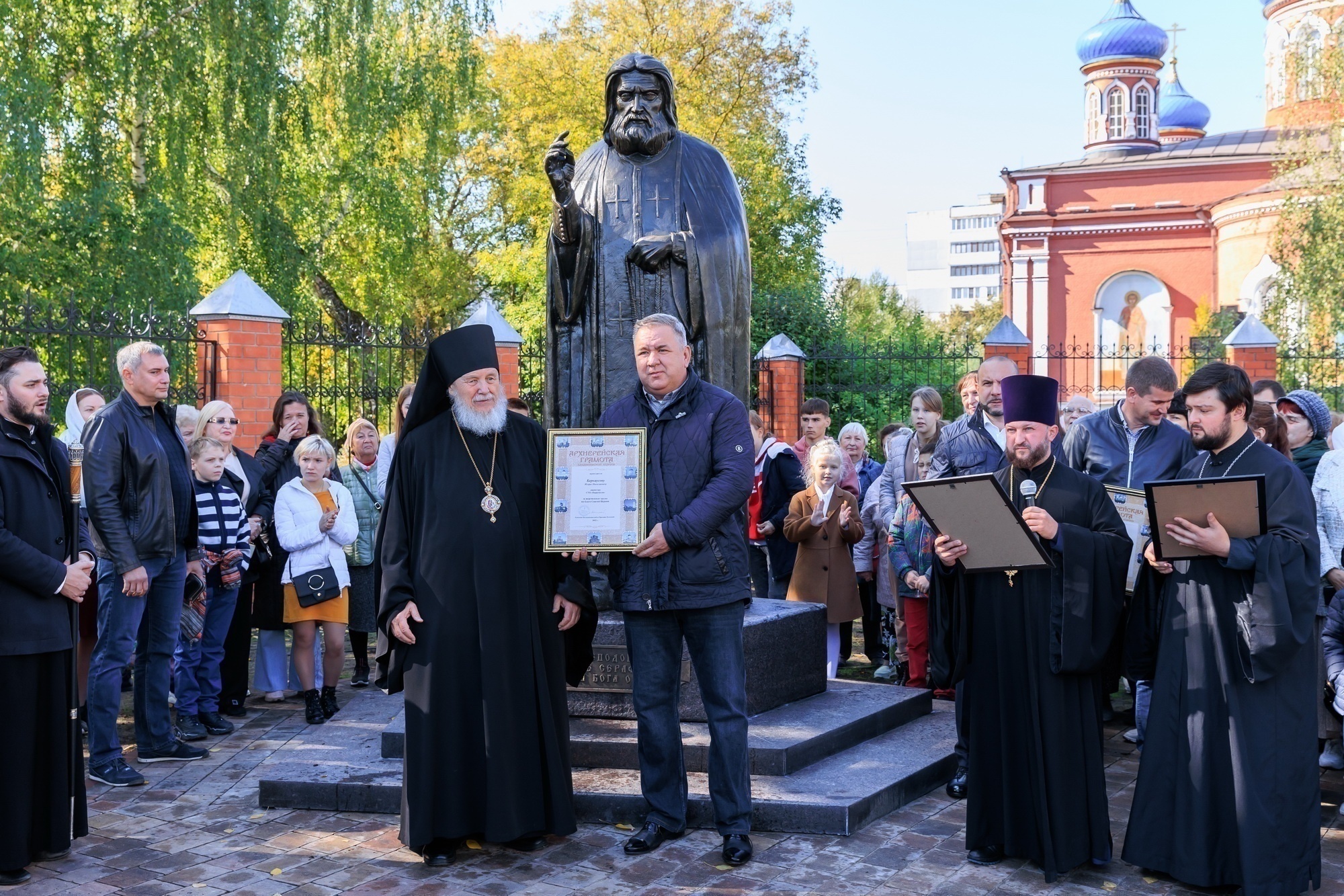 В начале мероприятия Преосвященнейший Владыка совершил молебен преподобному и окропил памятник, молящихся и сквер святой водой, после чего обратился к собравшимся с архипастырским словом и вручил архиерейские грамоты потрудившимся в деле сооружения сквера и памятника.
