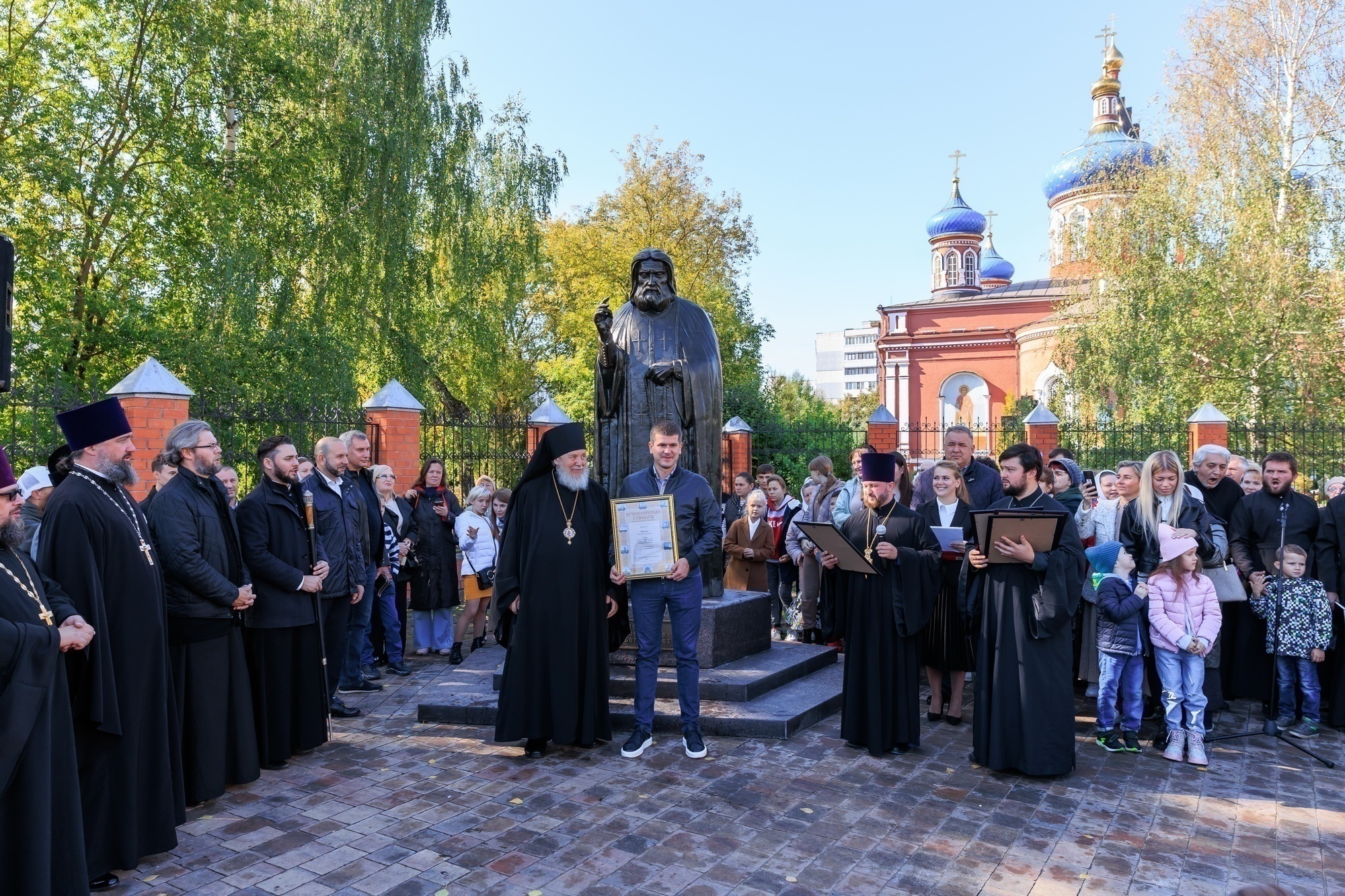 С поздравительными словами к участникам торжества обратились депутат Государственной Думы Г. О. Панин, глава Орехово-Зуевского городского округа Р. В. Заголовацкий, благотворитель, директор торгового центра «Баррикада» И. Н. Беркаусов, руководитель проекта создания памятника С. Н. Василюк и благочинный церквей Орехово-Зуевского округа протоиерей Андрей Коробков. От лица духовенства собора отец Андрей преподнёс Его Преосвященству комплект архиерейских панагий.