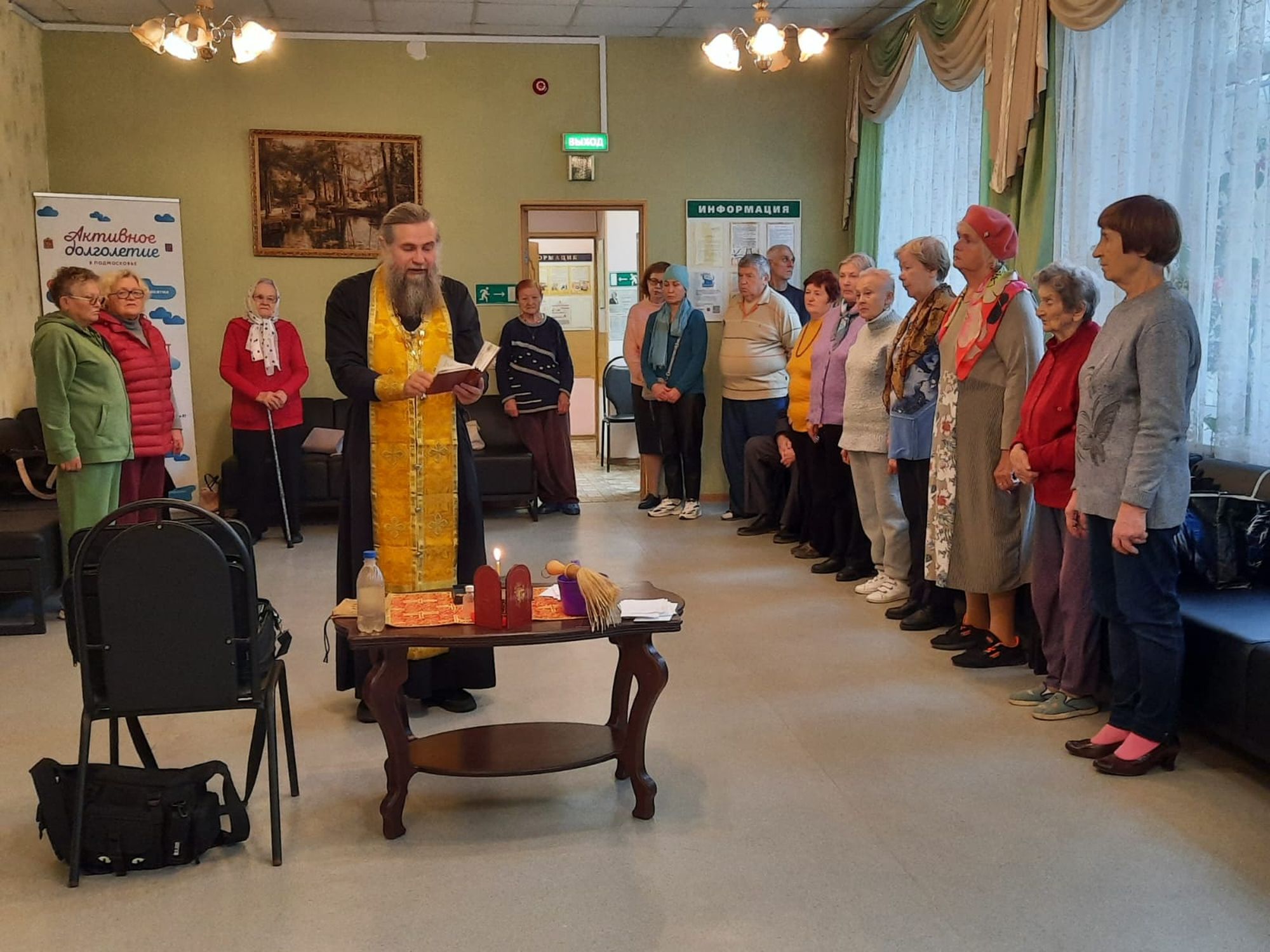 22 сентября ответственный за социальное служение в Балашихинском благочинии протоиерей Виталий Кулешов посетил отделение активного долголетия №3 г. Балашихи и провёл духовную беседу с персоналом и подопечными учреждения, по окончании которой батюшка совершил молебен.