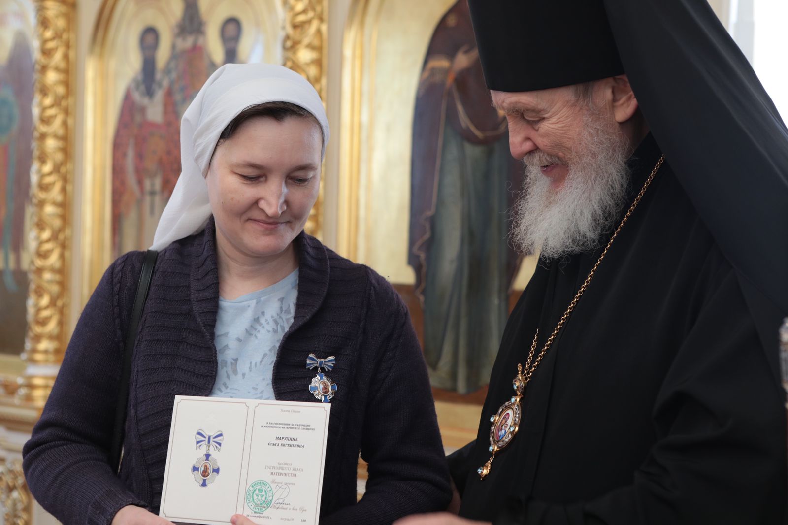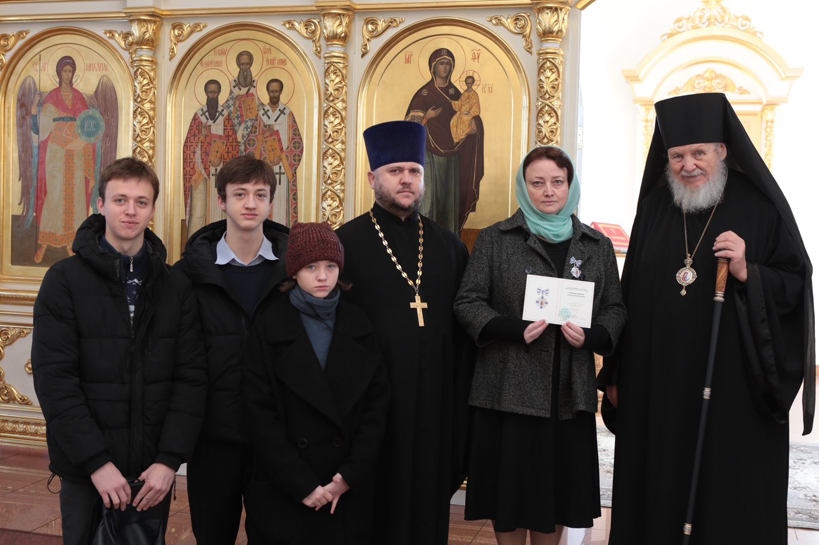 В Казанском храме города Павловский Посад епископ Николай встретился с многодетными семьями священнослужителей Павлово-Посадского благочиния и вручил Патриаршие знаки материнства II степени матушкам, имеющим пятерых и более детей.