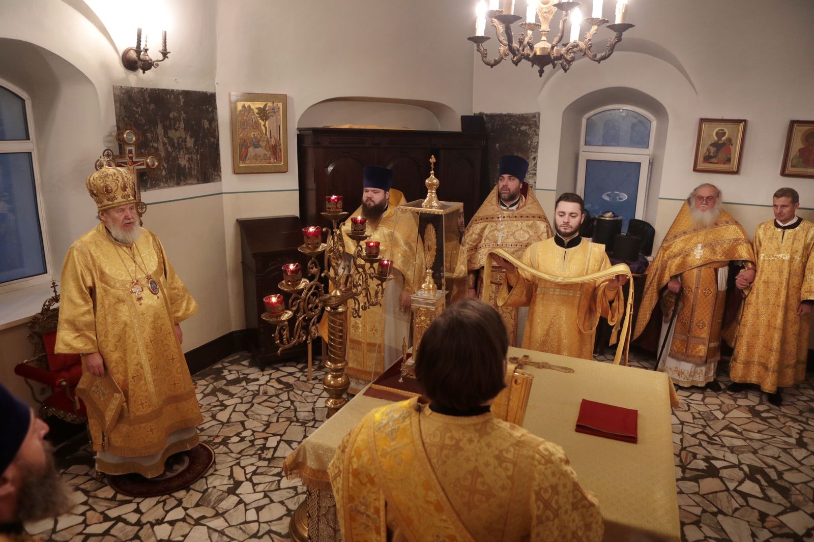 Все собравшиеся в храме получили в благословение от Владыки открытки с изображением часовни в честь чудесного избавления семьи императора Александра III при крушении поезда 29 октября 1888 года у села Борки. Часовня располагается на территории Никольского храма.