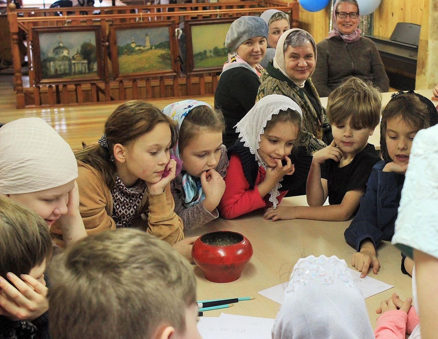 В воскресной школе при Богородицерождественском храме деревни Саурово дети поздравляли своих мам с праздником в игровой форме и загадывали загадки.