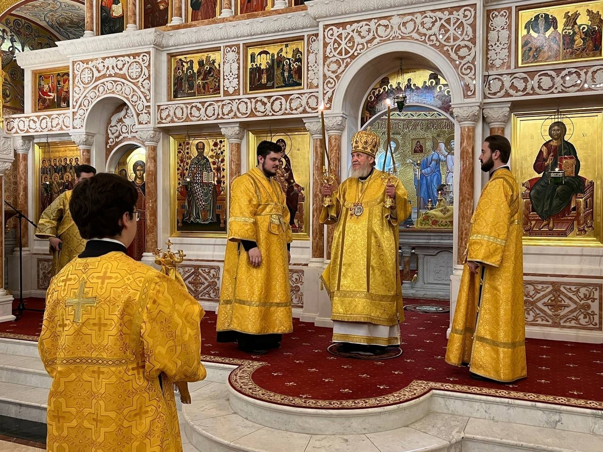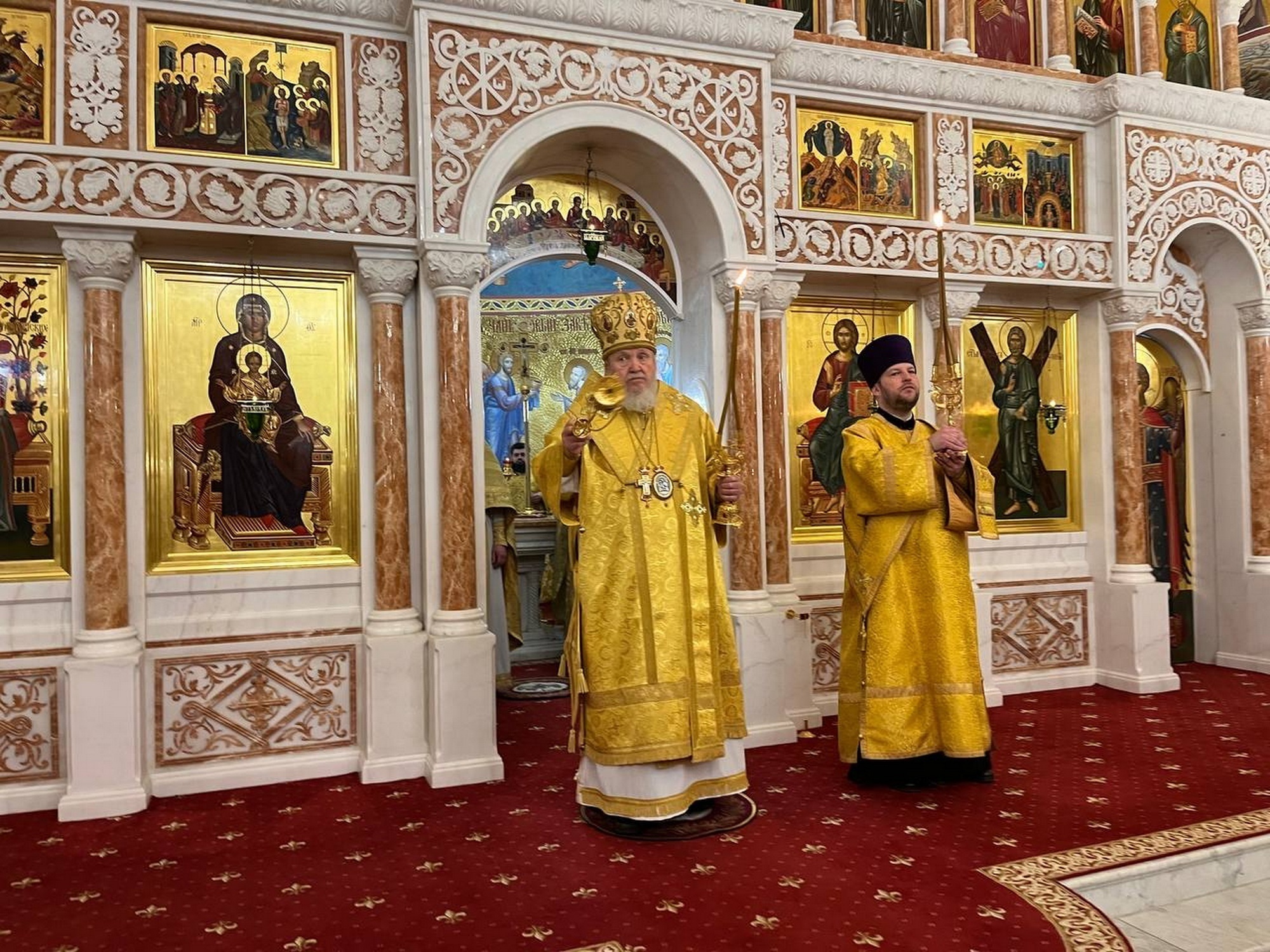 С приветственным словом к Владыке Николаю обратился настоятель Никольского собора священник Василий Лосев и передал благодарность и приветствие от архиепископа Фомы и прихода Никольского собора.
