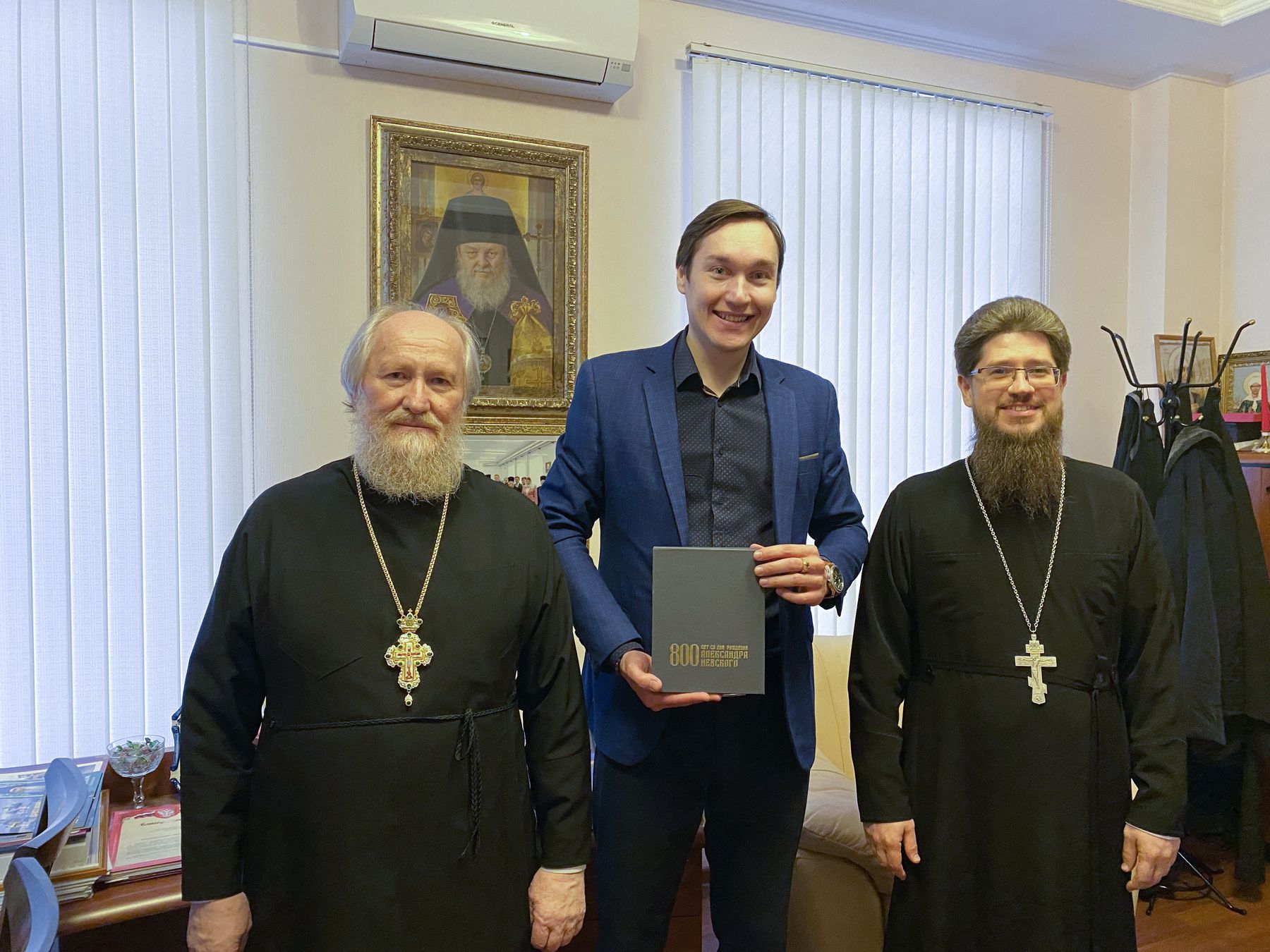 На память о встрече отец благочинный подарил Игорю Владимировичу книгу «800-летие со дня рождения Александра Невского».