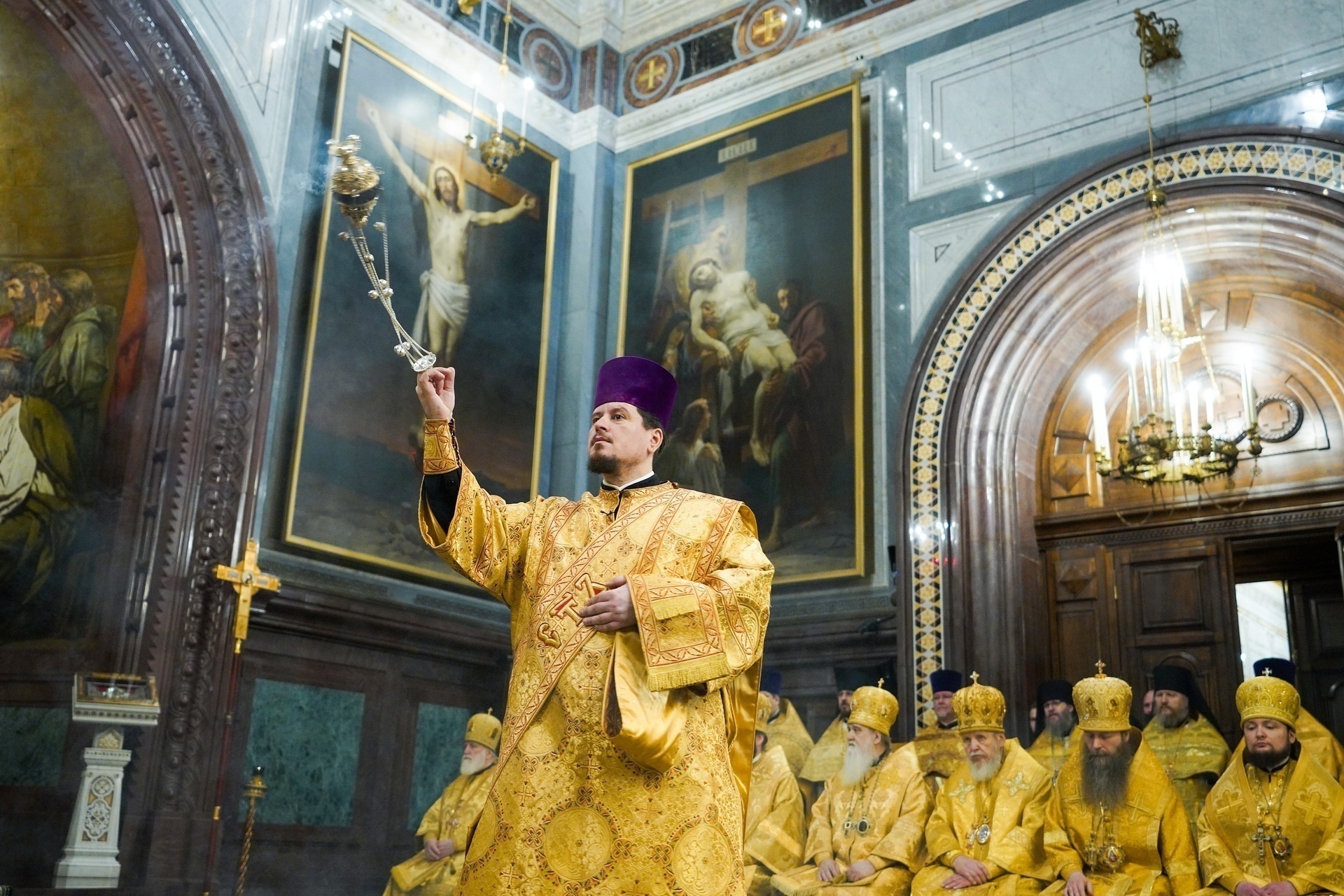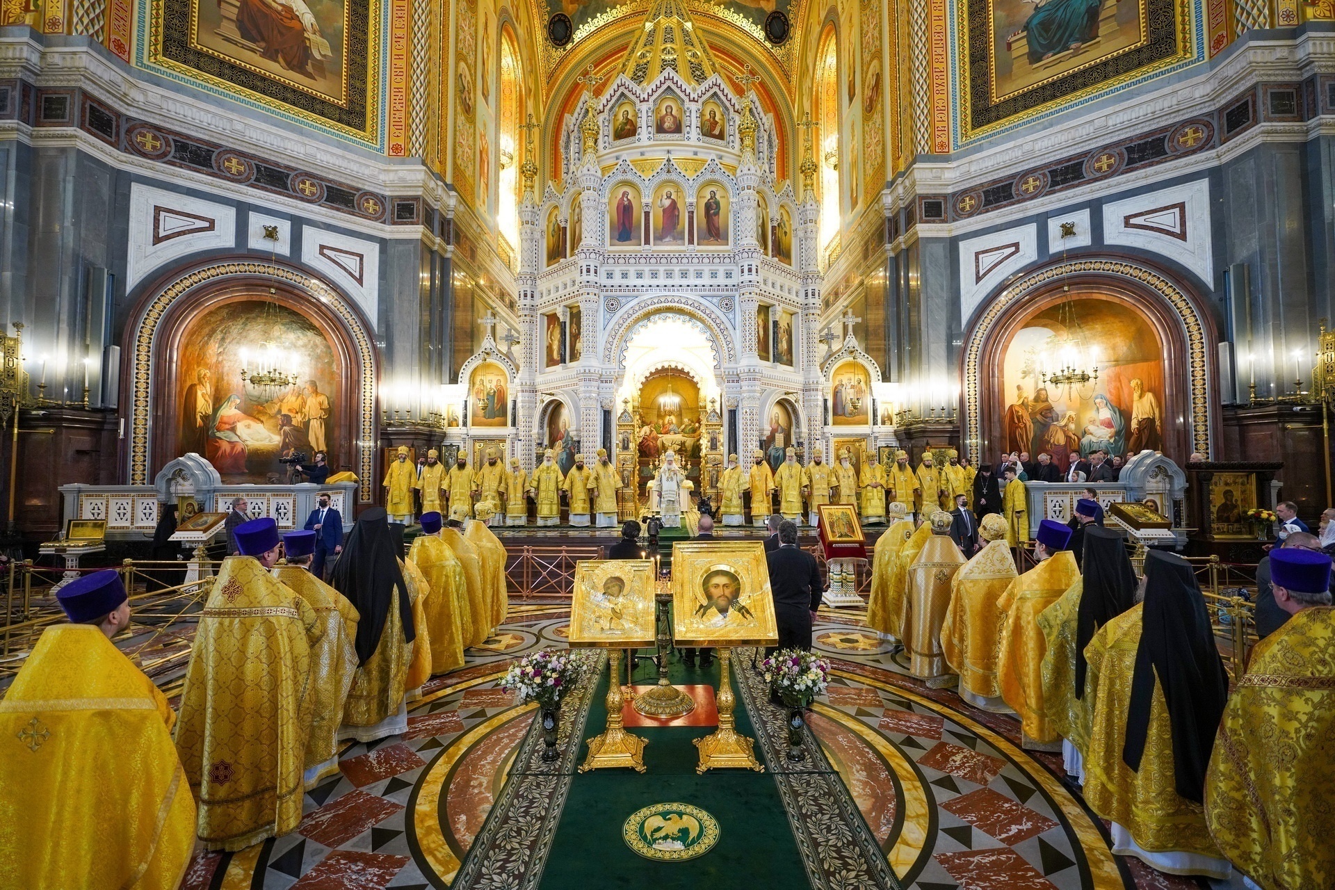 Богослужебные песнопения исполнил Патриарший хор Храма Христа Спасителя (регент И.Б. Толкачев).