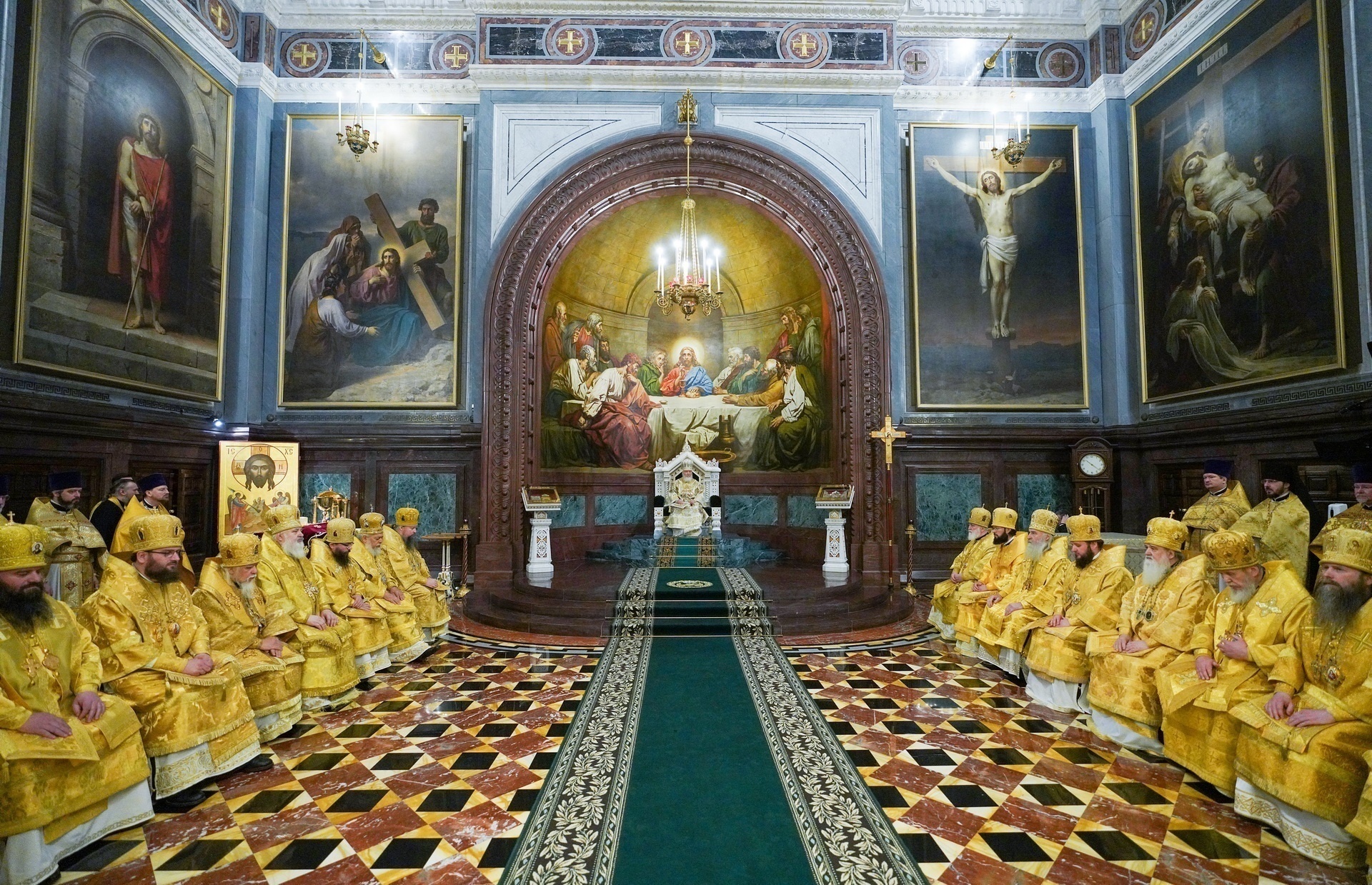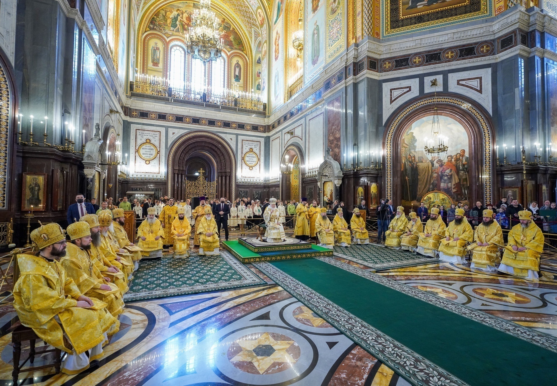 Также Предстоятелю Русской Православной Церкви сослужили представители Поместных Православных Церквей при Патриархе Московском и всея Руси и наместники ставропигиальных монастырей.