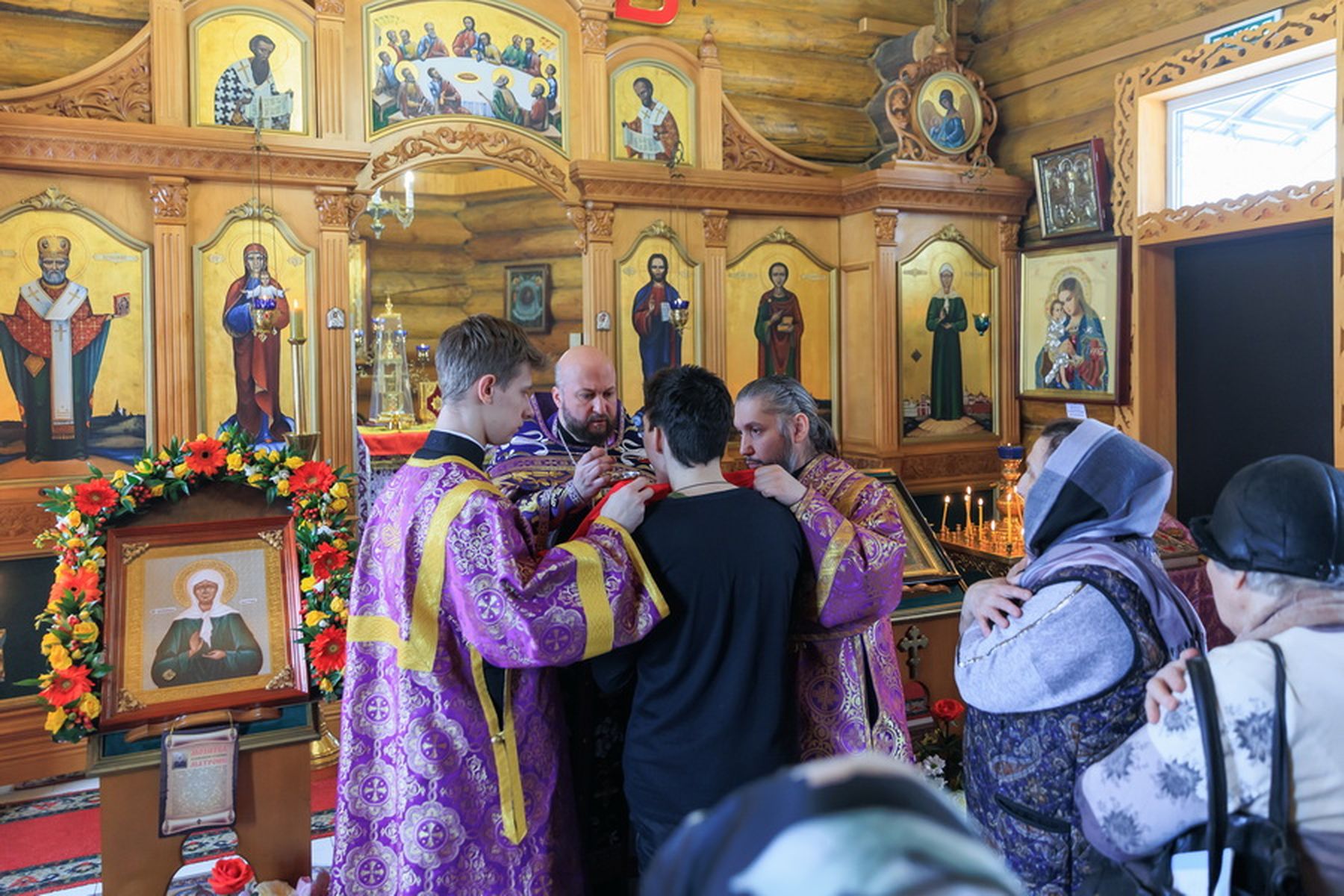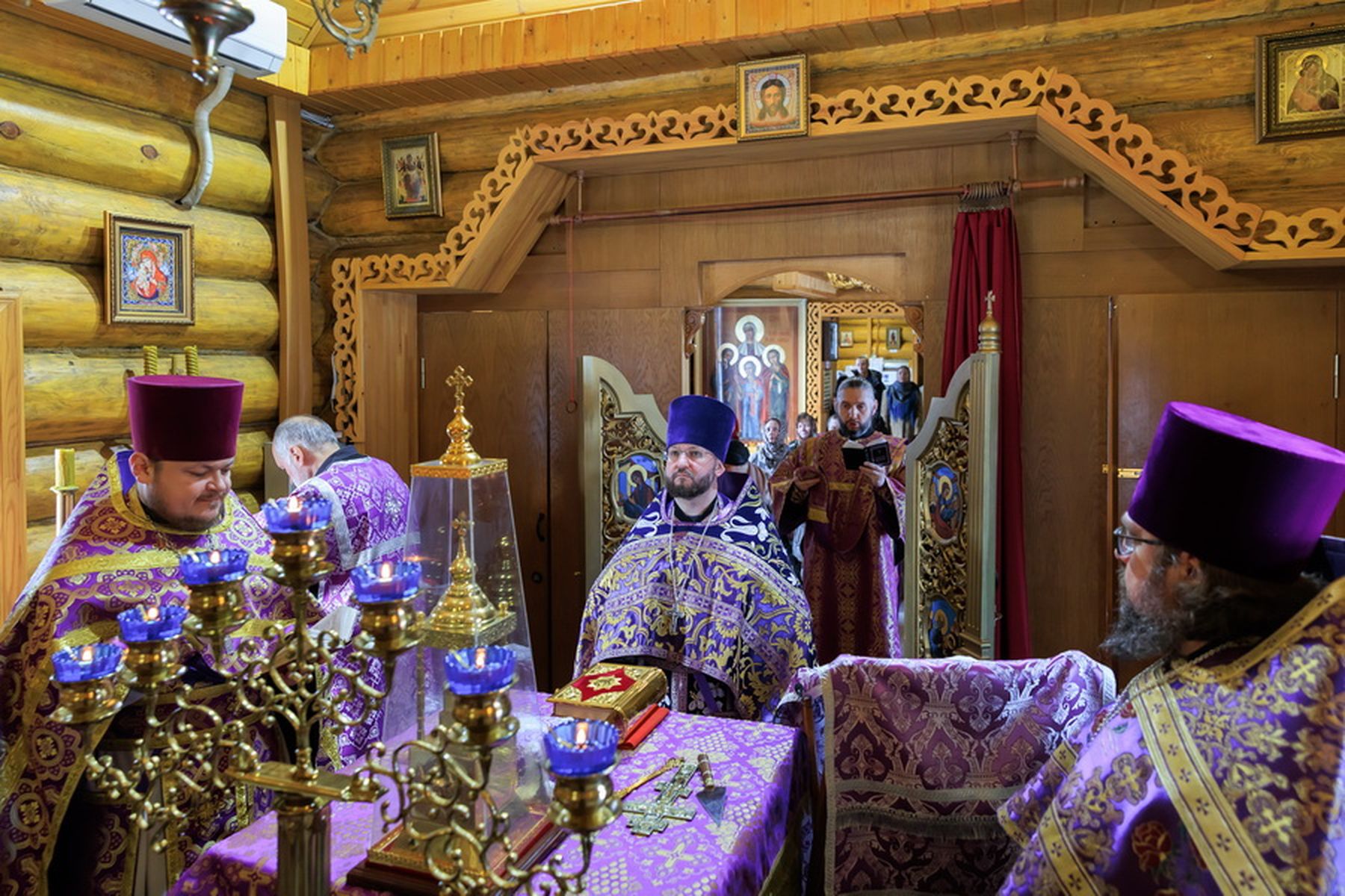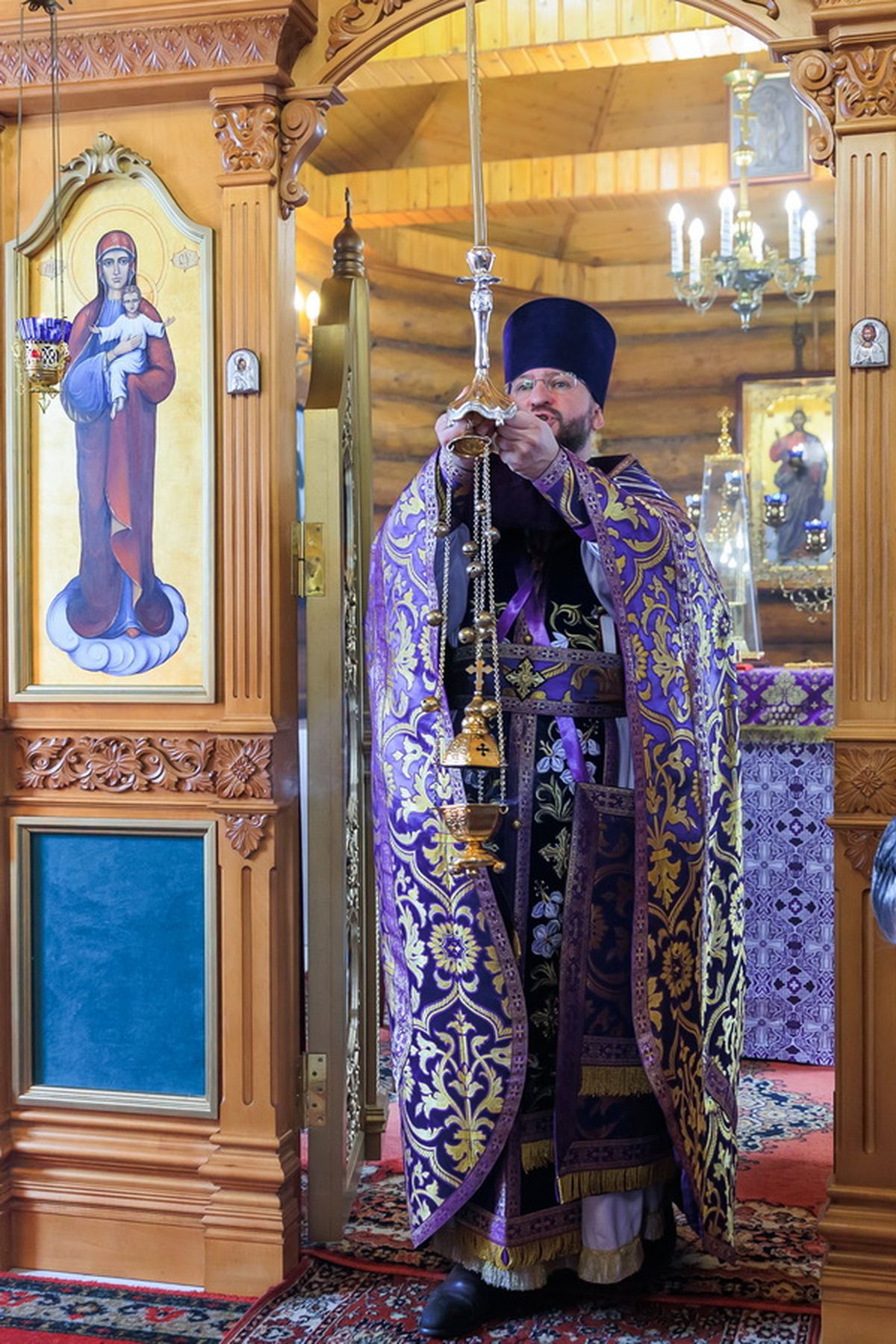 Отцу Андрею сослужили настоятель храма священник Леонид Целорунго и клирик Крестовоздвиженского храма города Орехово-Зуево протоиерей Ярослав Шелест.