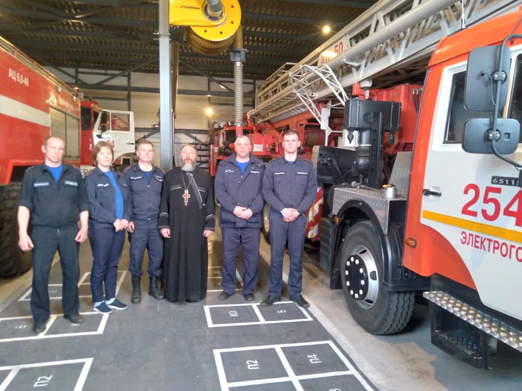 5 апреля в пожарно-спасательной части 254 города Электрогорск ответственный за взаимодействие с Вооруженными силами и правоохранительными органами в Павлово-Посадском благочинии протоиерей Владимир Владимиров совершил молебен и провёл духовную беседу с личным составом.