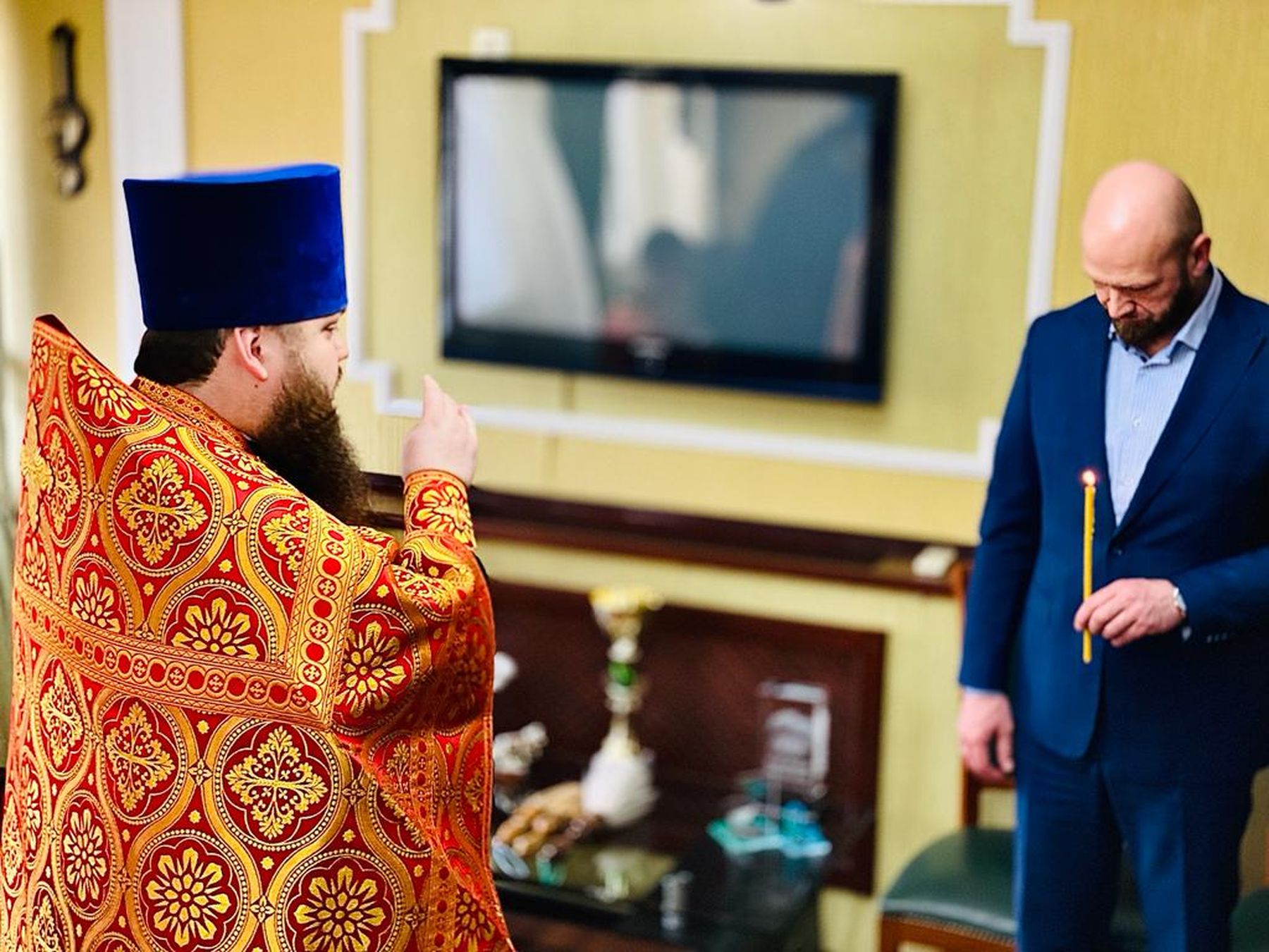 По окончании богослужения отец Александр обратился к молящимся с приветственным словом и преподнёс временно исполняющему обязанности главы городского округа Электрогорск А. С. Кулакову в благословение икону Спасителя.