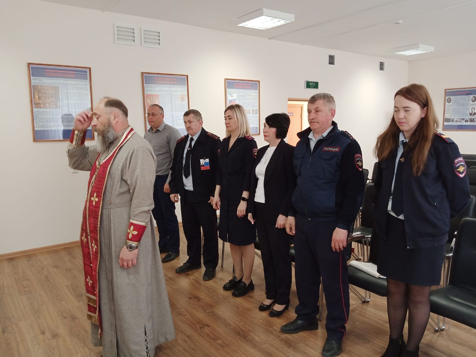 24 апреля в Электрогорском отделе полиции ответственный за взаимодействие с Вооруженными силами и правоохранительными органами в Павлово-Посадском благочинии протоиерей Владимир Владимиров совершил молебен и провёл духовную беседу с сотрудниками.