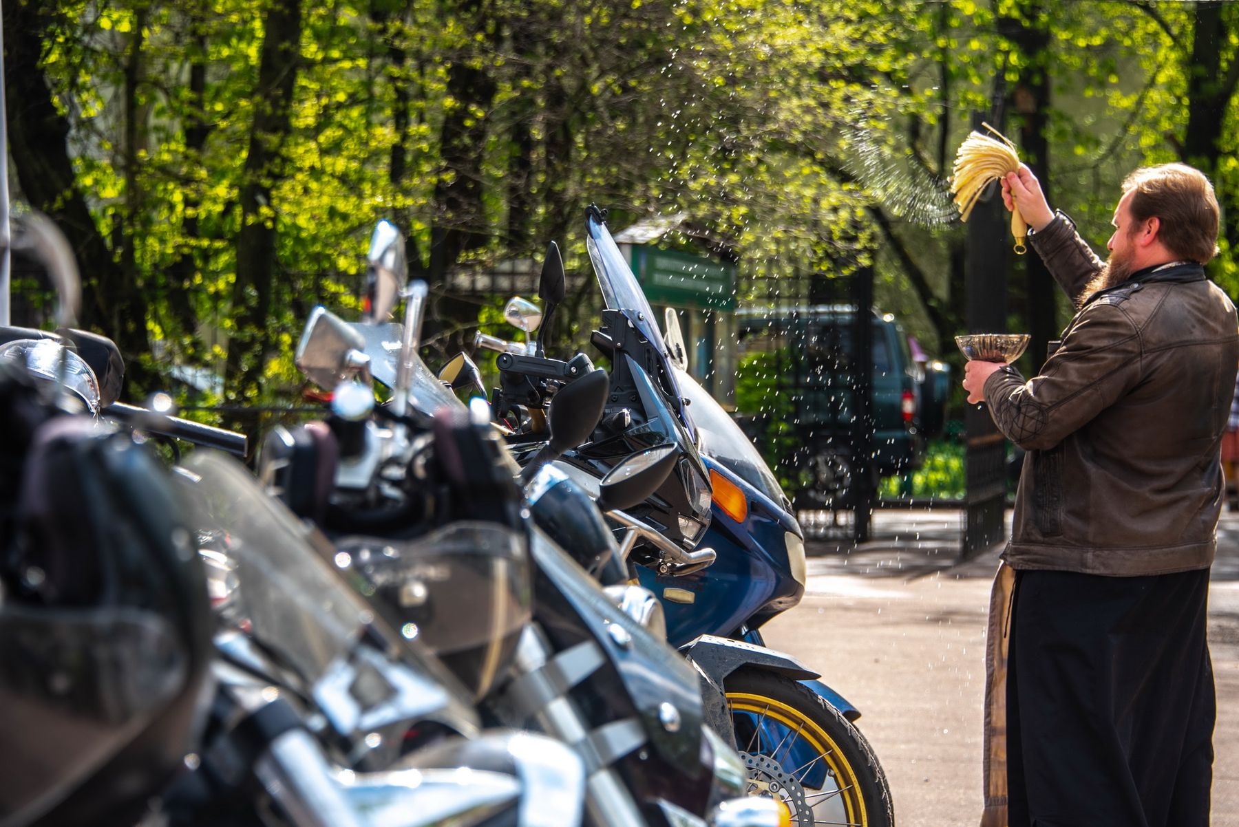 Клирик кафедрального собора священник Андрей Сомов совершил молебен в связи с открытием мотосезона и окропил святой водой мотоциклы и их владельцев.