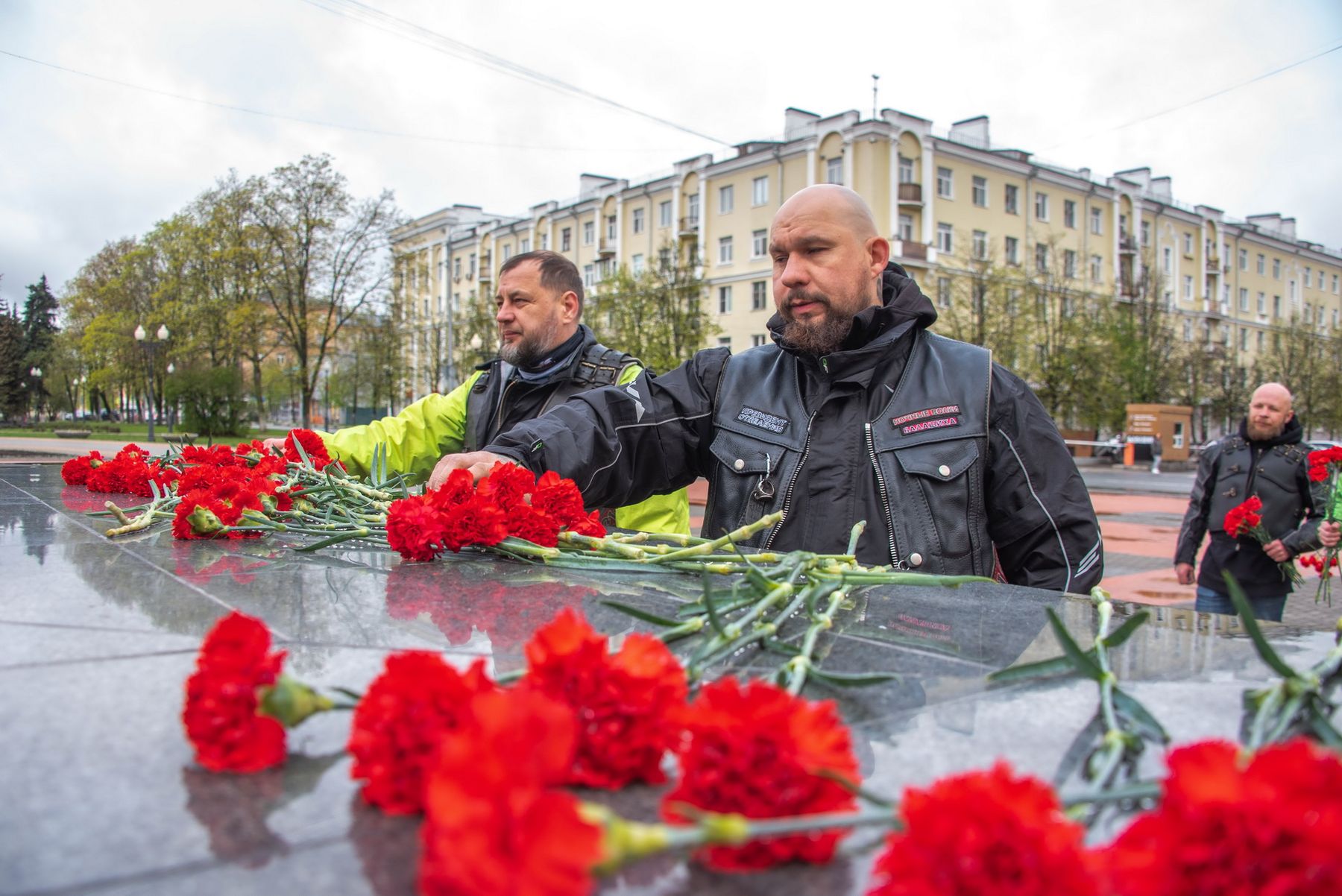 29 апреля члены мотоклуба «Ночные волки – Балашиха» во главе с президентом Антоном Огарковым возложили цветы к мемориалу павшим войнам на площади Славы города Балашиха, после чего направились в Преображенский кафедральный собор на субботник.
