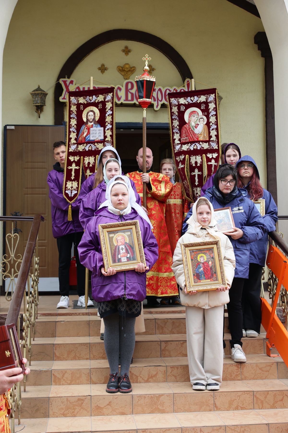 После заамвонной молитвы и крестного ход пропели славление пред иконой святого и совершили заупокойную литию у мемориала «Аллея памяти», посвящённого трагически погибшим 27 мая 2004 года футболистам команды «Знамя труда» и спортсменам, воевавшим в годы Первой мировой и Великой Отечественной войн.