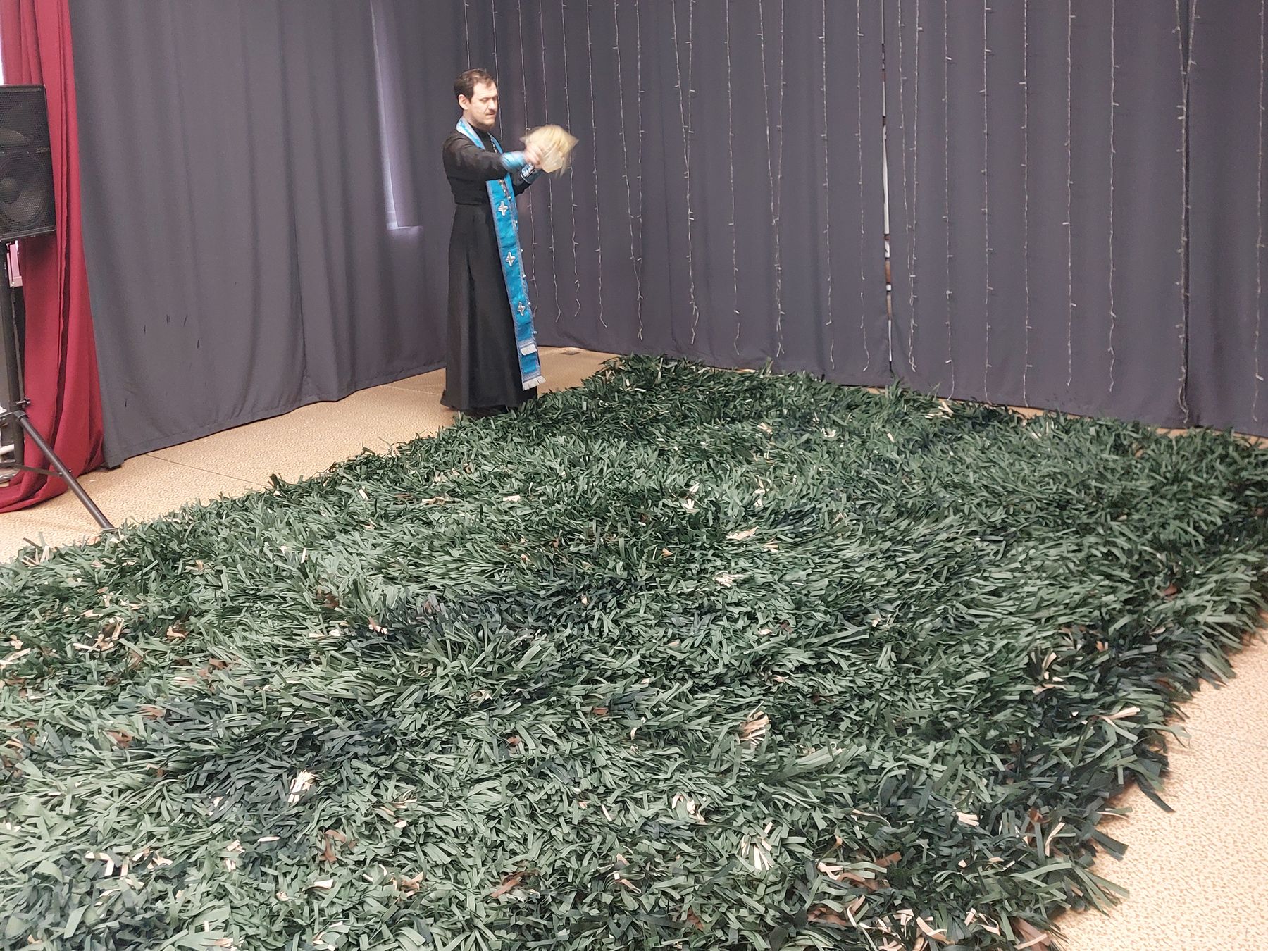 30 апреля в культурно-спортивном комплексе «Мальцево» городского округа Щёлково настоятель Богородицерождественского храма посёлка Образцово священник Димитрий Выдумкин освятил сети для нужд СВО, которые сплетены руками тружениц добровольцев.