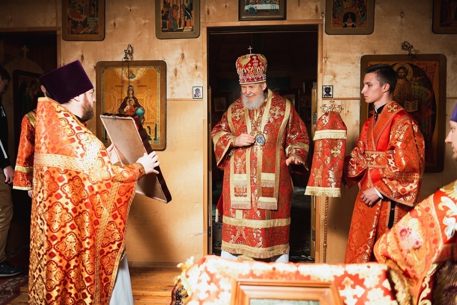 По окончании крестного хода были возглашены уставные многолетия, после чего отец настоятель обратился к Владыке Николаю с приветствием и преподнёс ему икону святителя Николая Чудотворца.