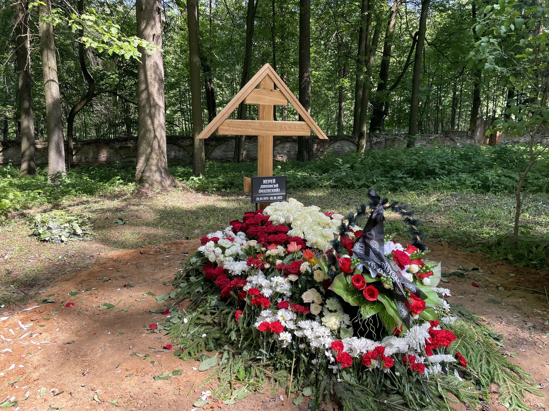 Похоронен иерей Дионисий Маевский за алтарем Гребневского храма деревни Гребнево.
