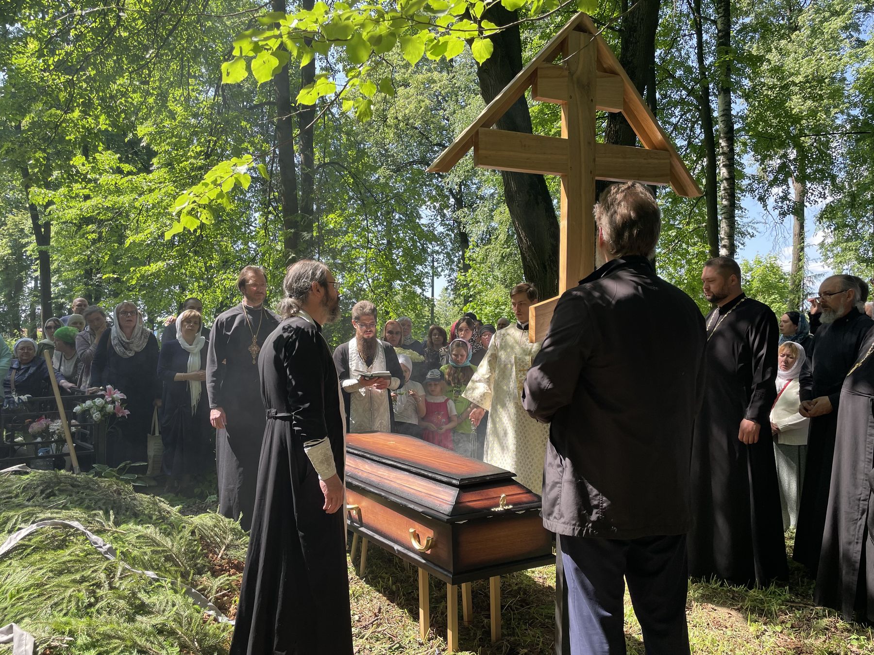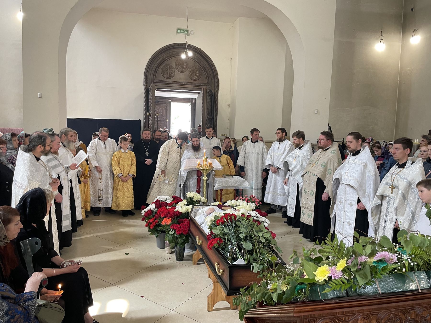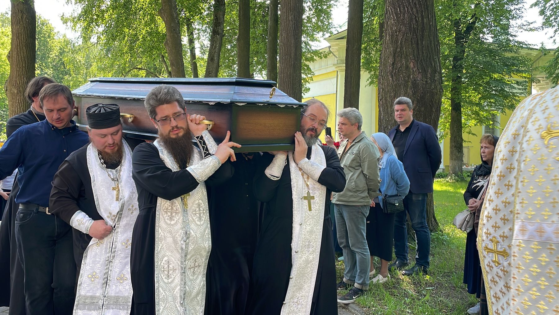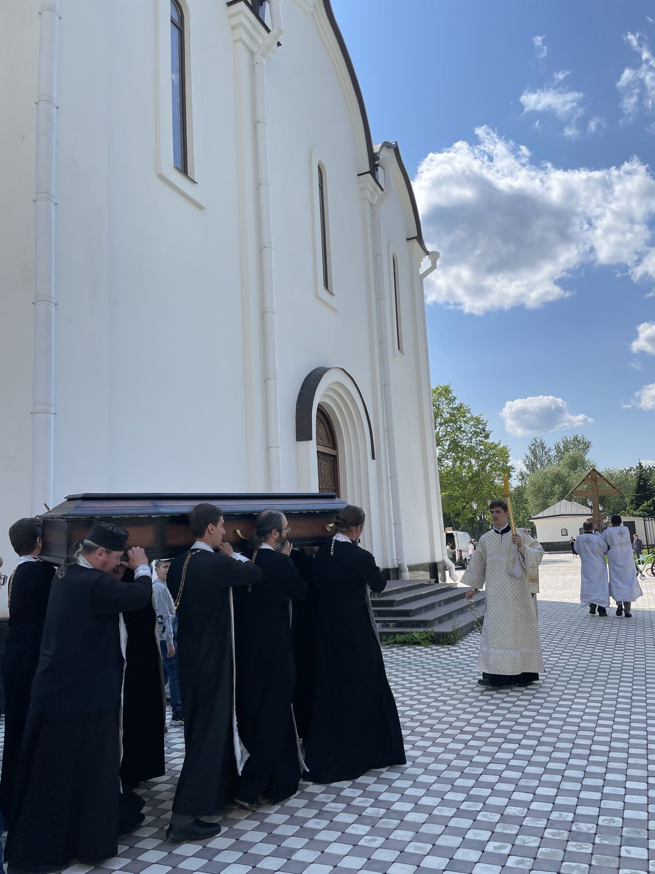 Гроб с телом почившего батюшки под пение ирмосов канона священнослужители пронесли крестным ходом вокруг Державного храма.
