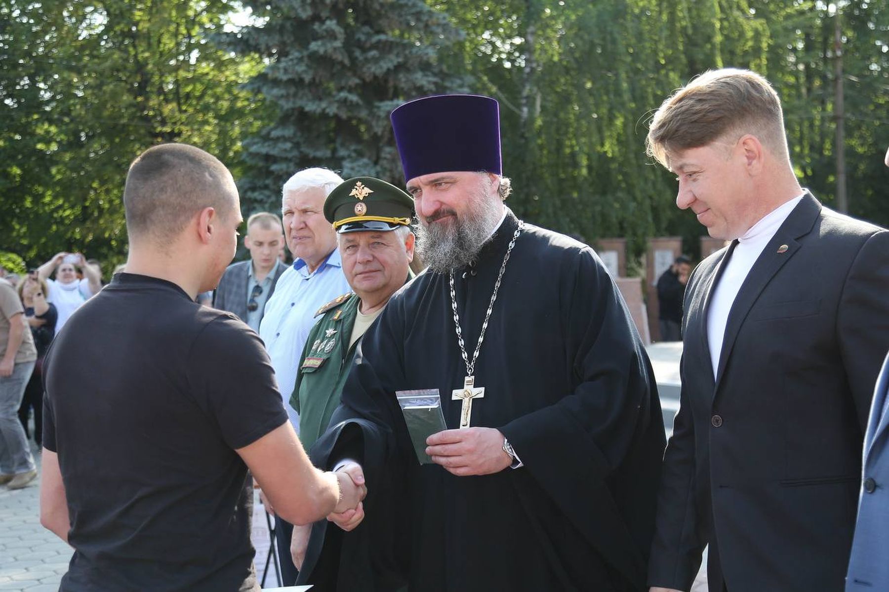 После торжественной части и вручения путёвок батюшка подарил новобранцам молитвословы и пояски «Живый в помощи Вышняго».