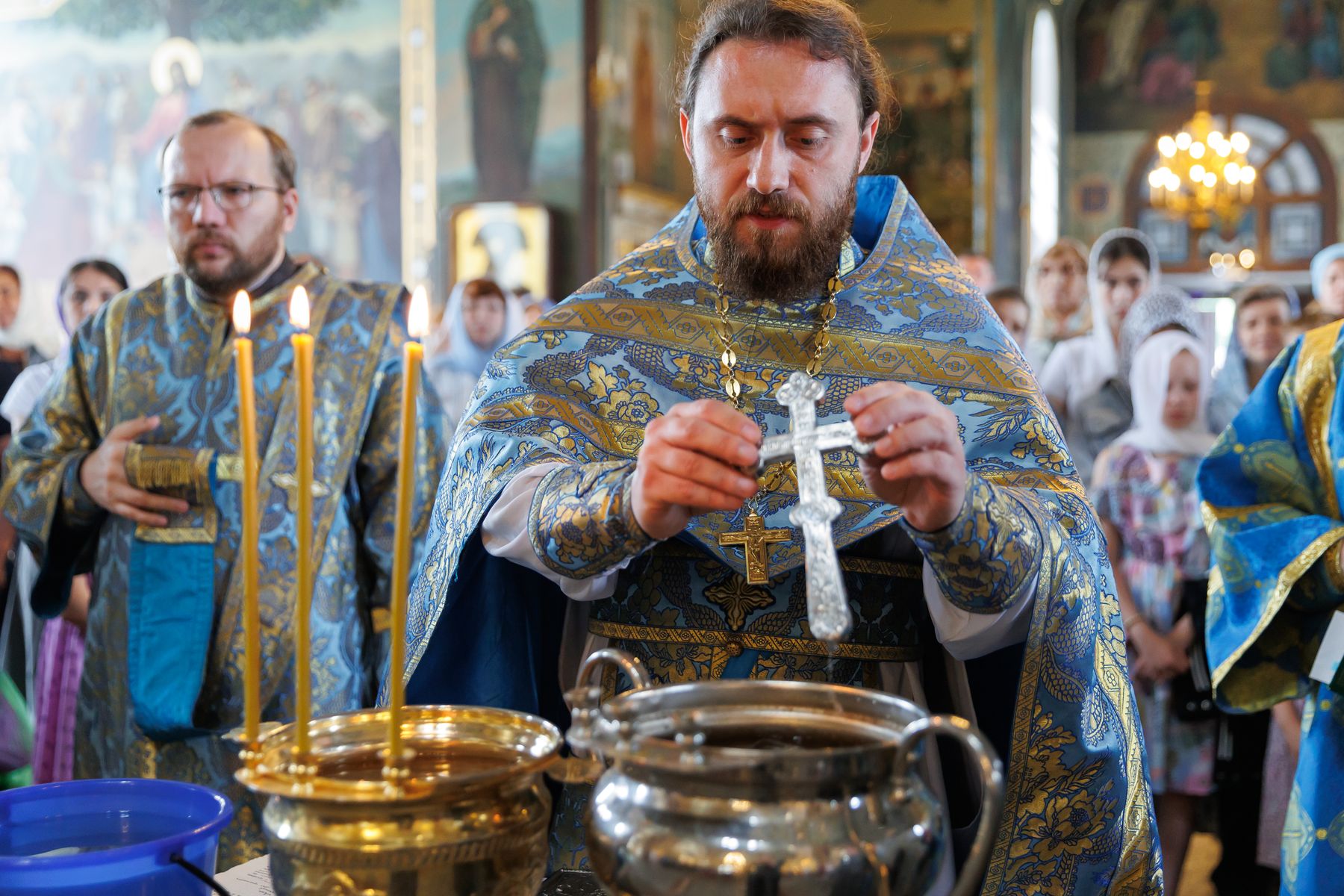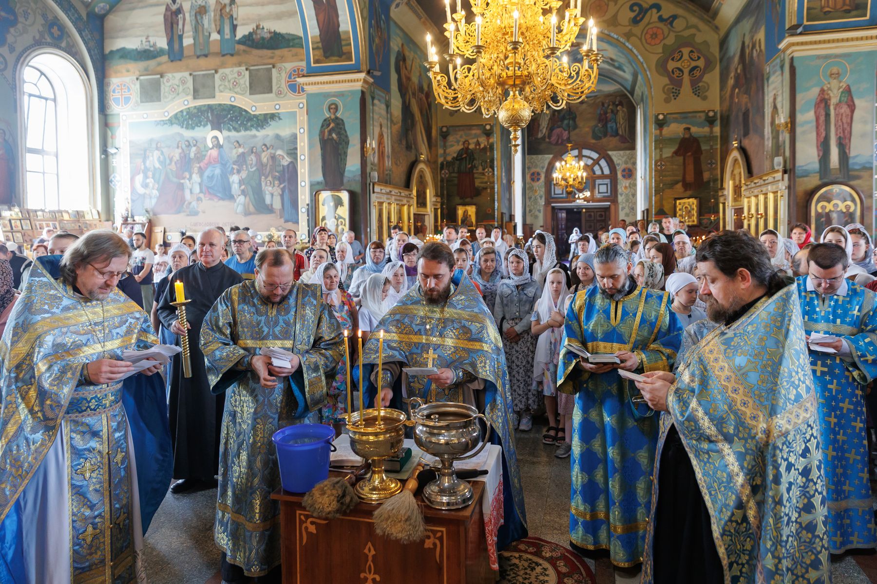 За богослужением молились клирики собора, дети и педагоги воскресных школ, организаторы и воспитатели детского лагеря, родители и родственники ребят.