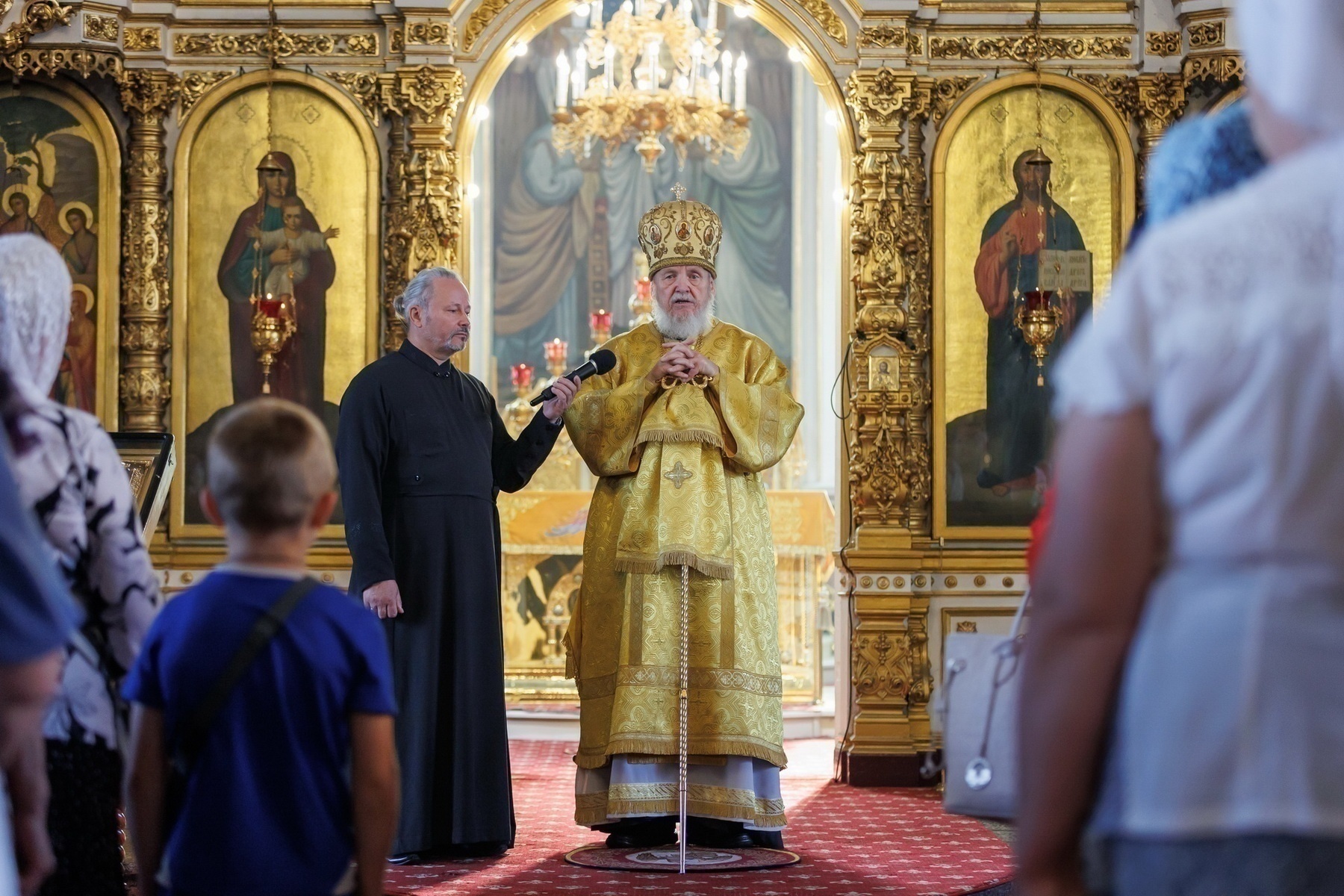 По окончании Литургии за праздничным молебном была вознесена особая молитва о здравии тезоименитого Президента России Владимира Владимировича Путина и возглашены многолетия, после чего отец благочинный обратился к Владыке Николаю с приветствием и поблагодарил за совершённое богослужение.