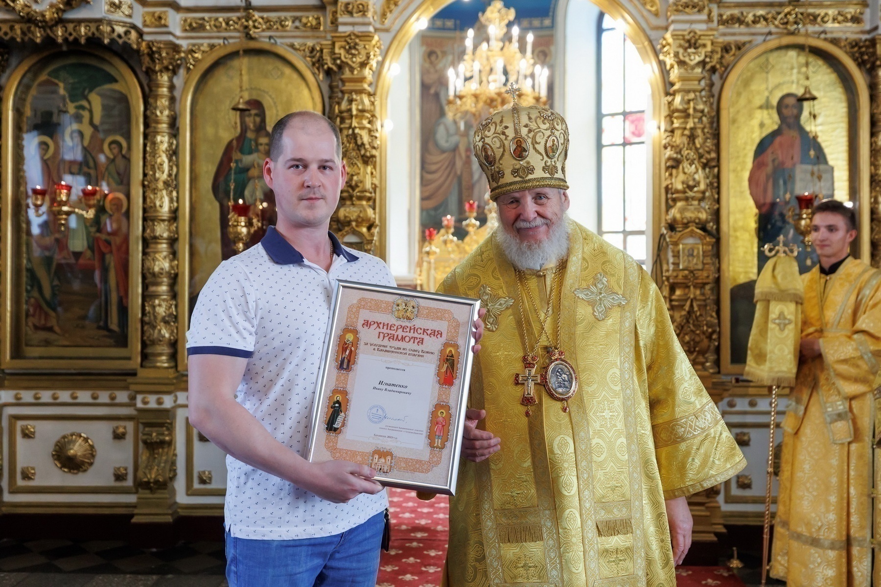 Затем Его Преосвященство вручил Архиерейские грамоты Балашихинской епархии за благотворительную помощь депутату Государственной Думы Г.О. Панину, предпринимателям И. В. Игнатенко и Д. С. Высоцкому, поздравил с днём тезоименитства городского прокурора В. В. Бусыгина, после чего обратился к сослужившему духовенству и молящимся с архипастырским словом.