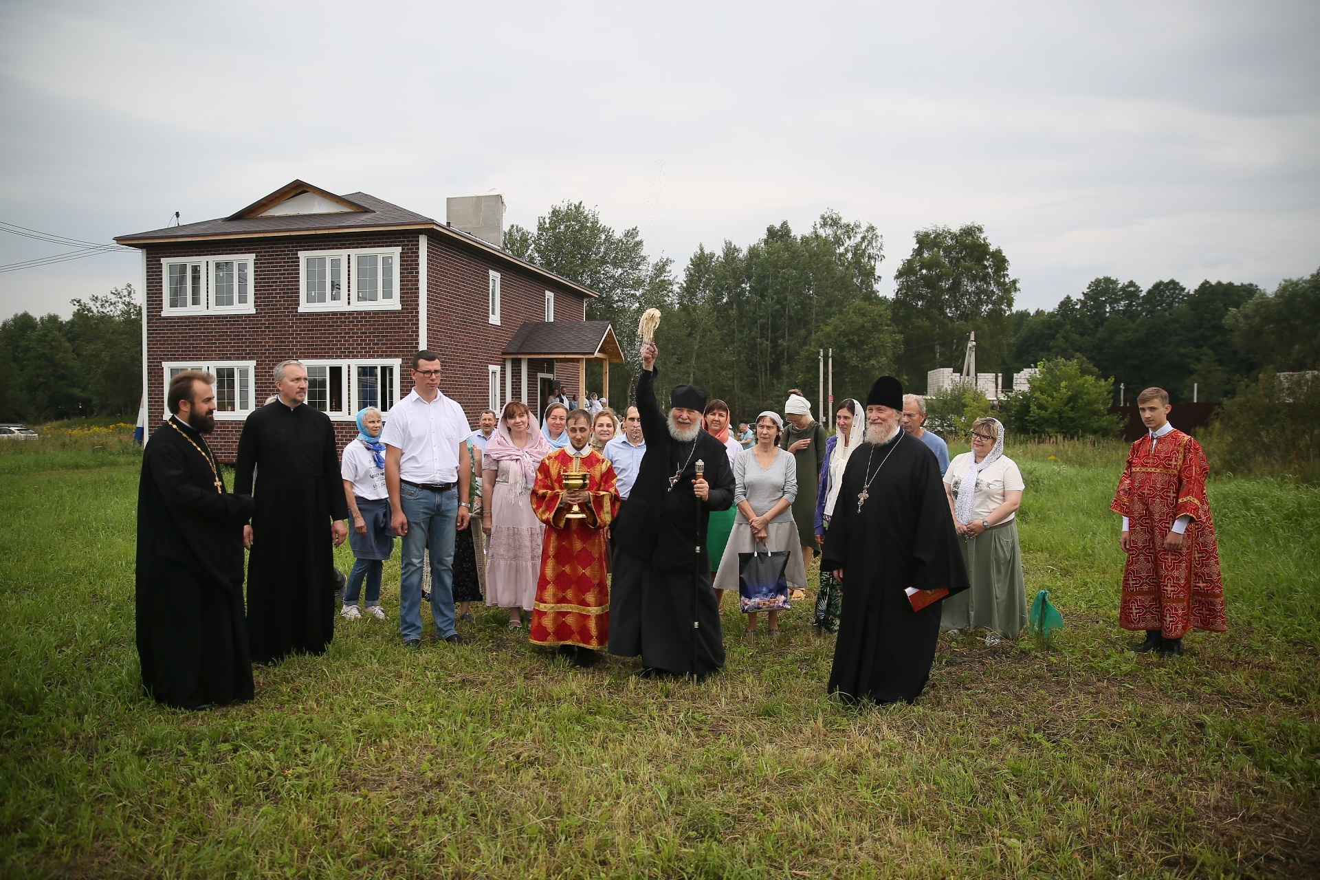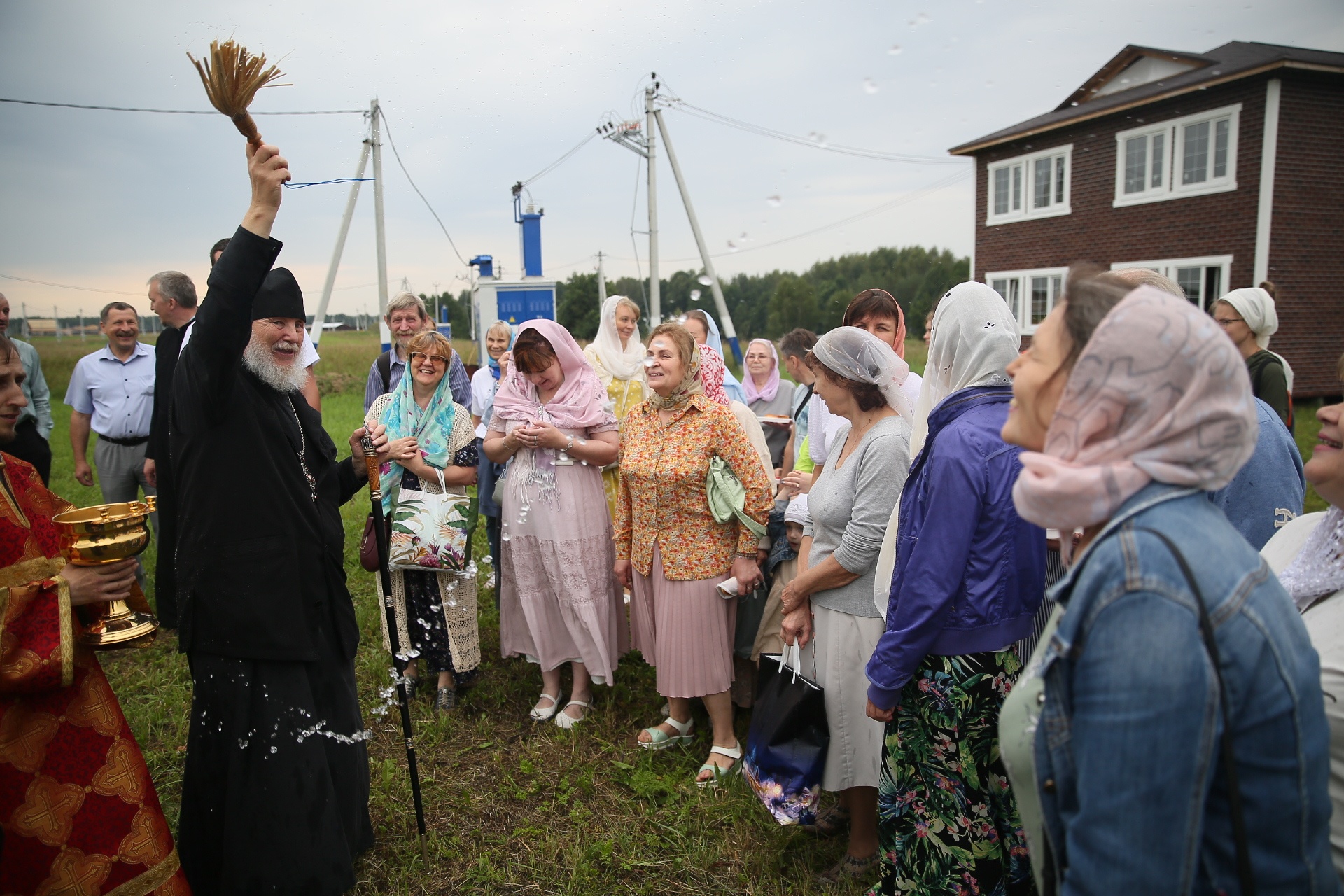 Затем епископ Николай обратился к сослужившему духовенству и молящимся с архипастырским словом, после чего окропил святой водой место, выделенное под строительство храма мученика Иоанна Воина.