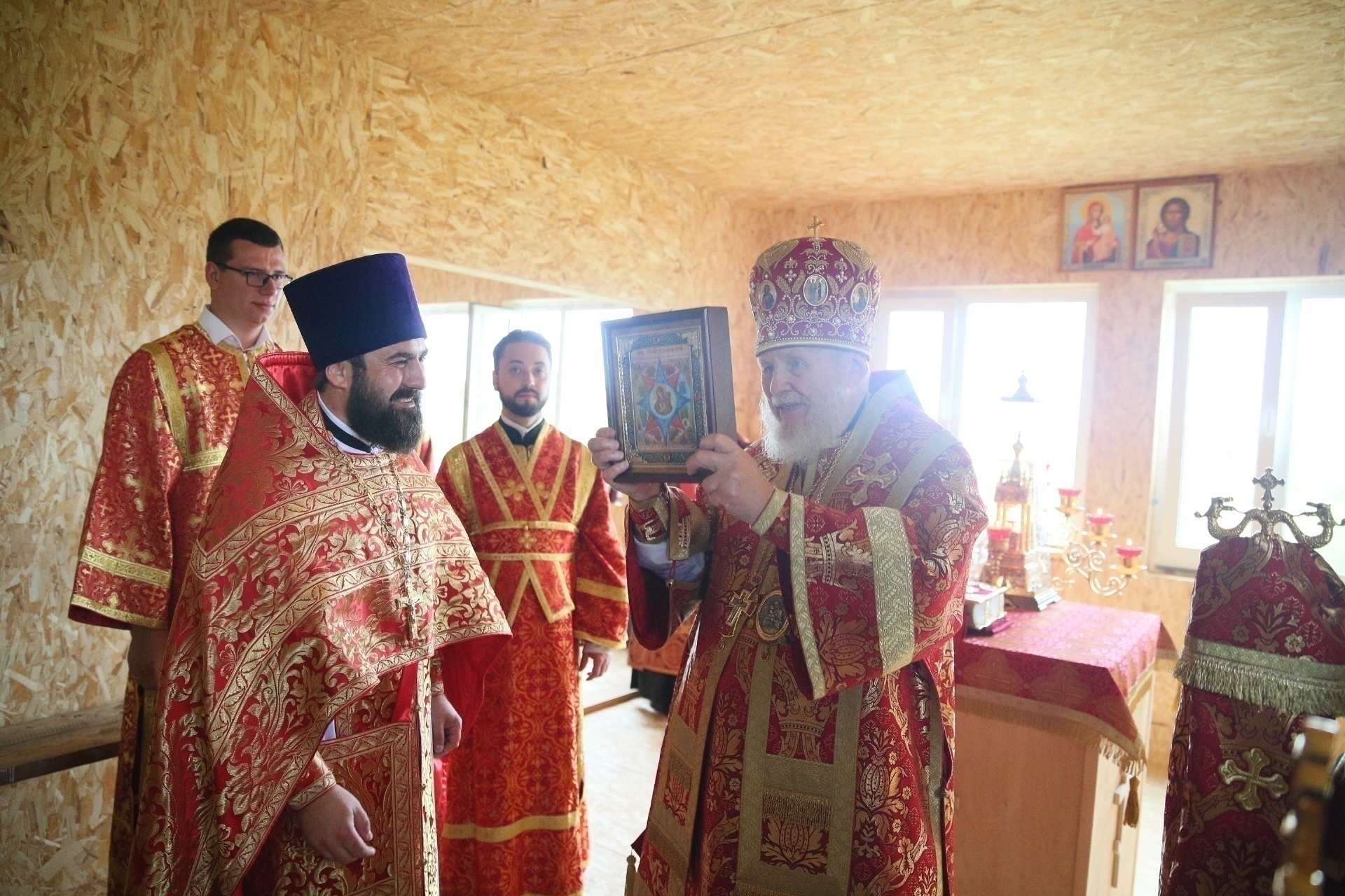 Отец настоятель поблагодарил Владыку Николая за совершённое богослужение и преподнёс ему икону Божией Матери «Неопалимая Купина», которая, по благословению Его Преосвященства, была подарена приходу.