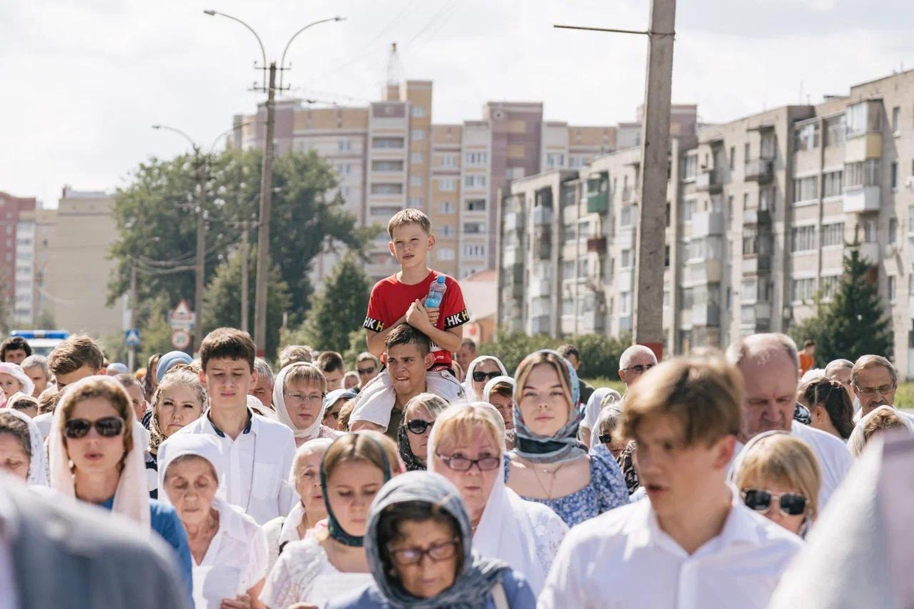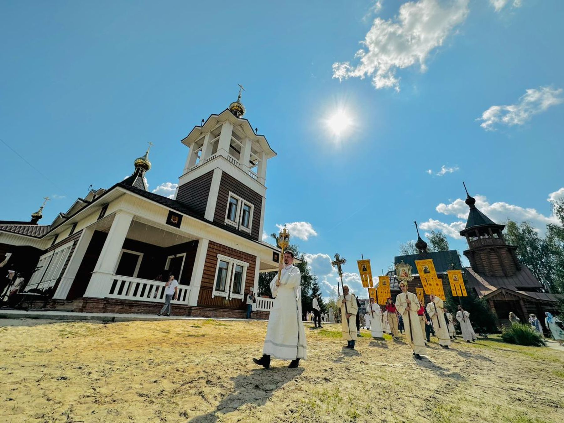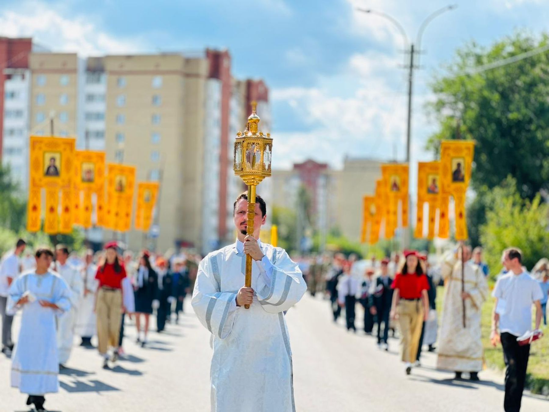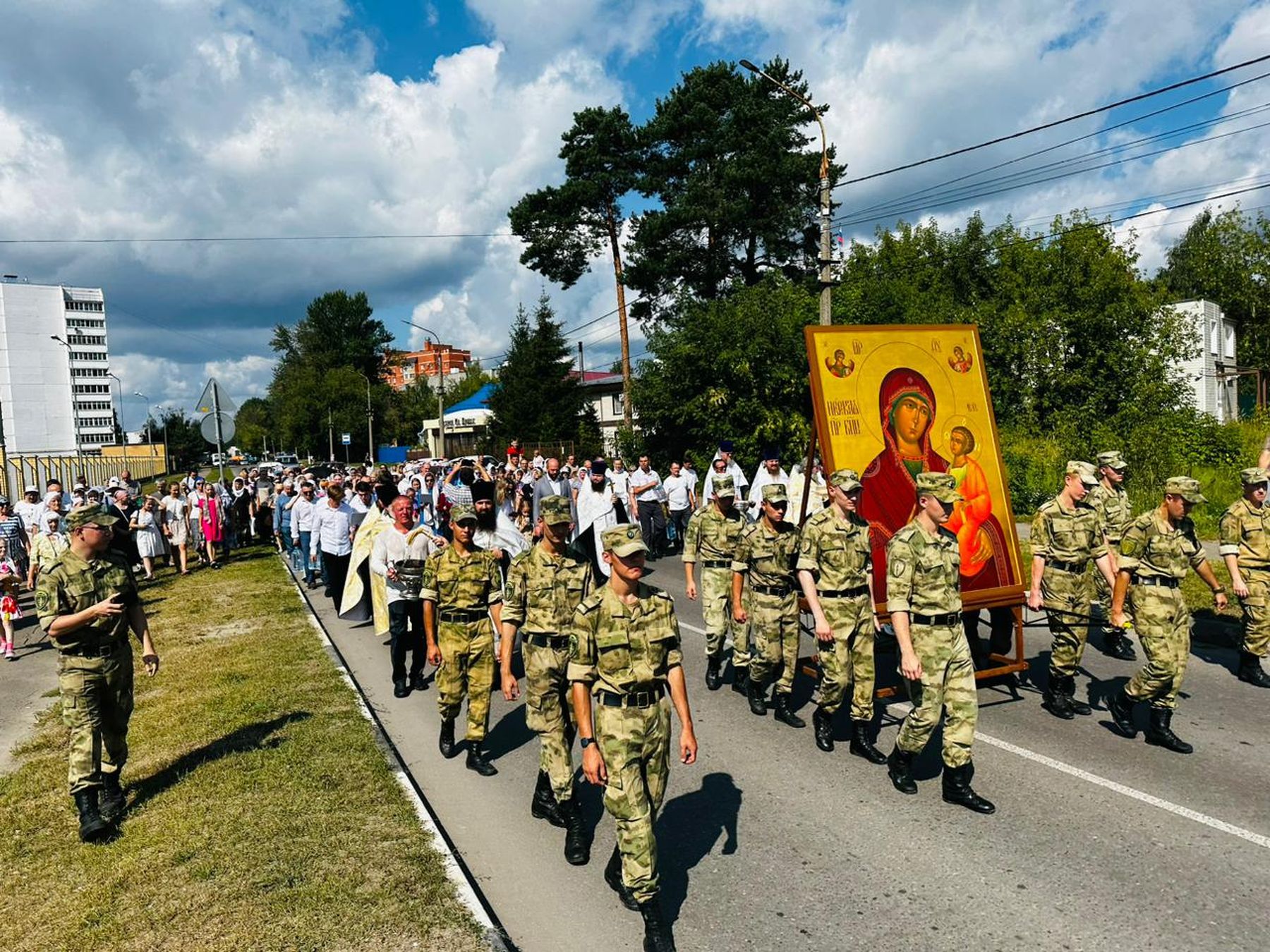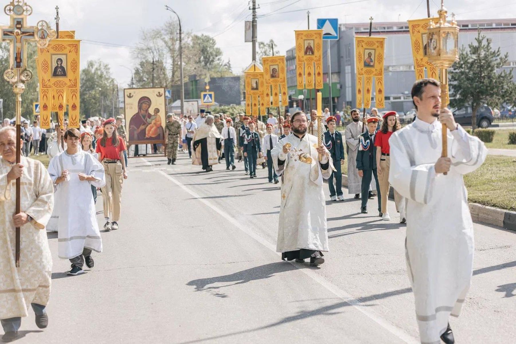 Шествие в сопровождении колокольного звона проследовало от храма Всех святых, в земле Русской просиявших, по основным улицам и кварталам города.
