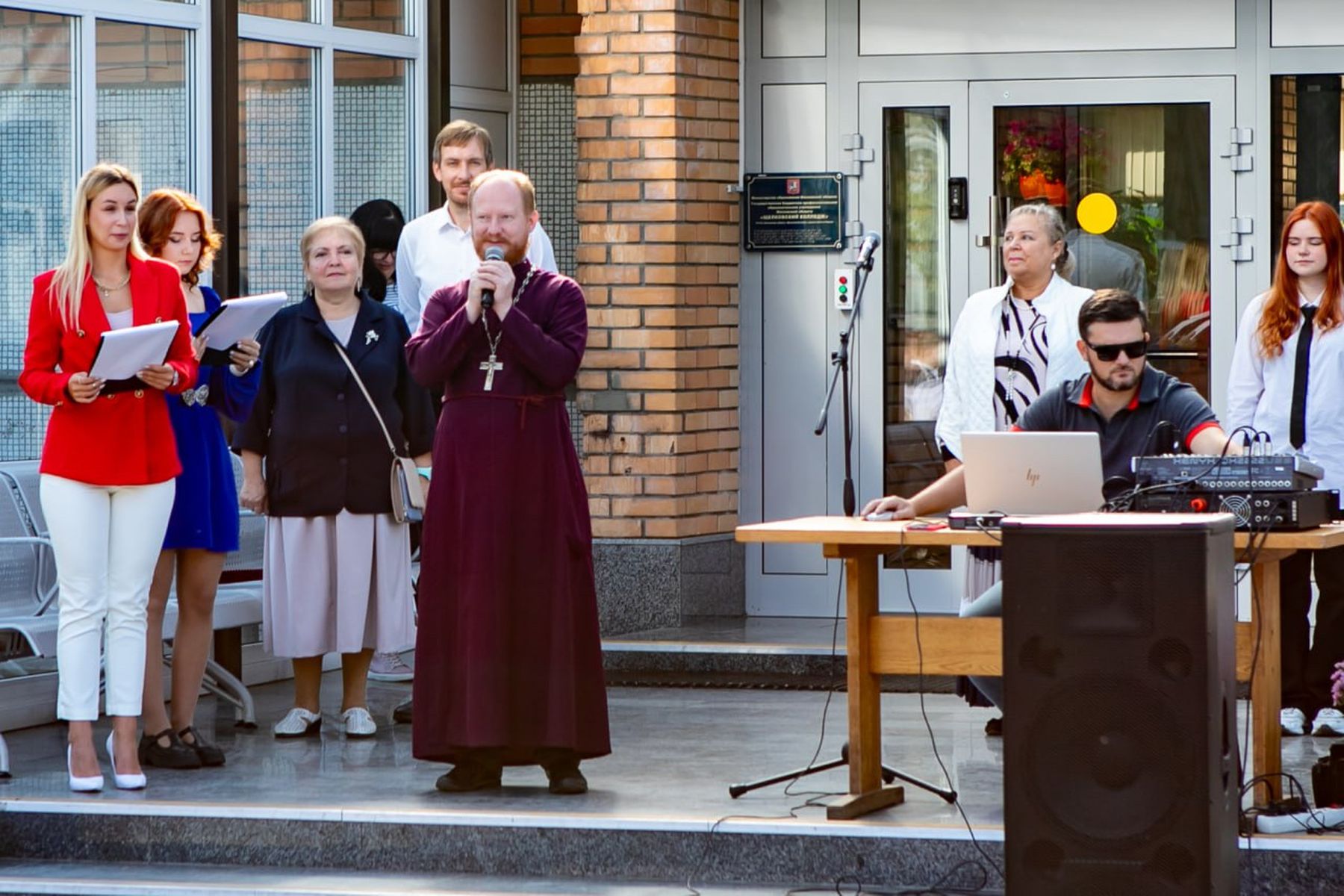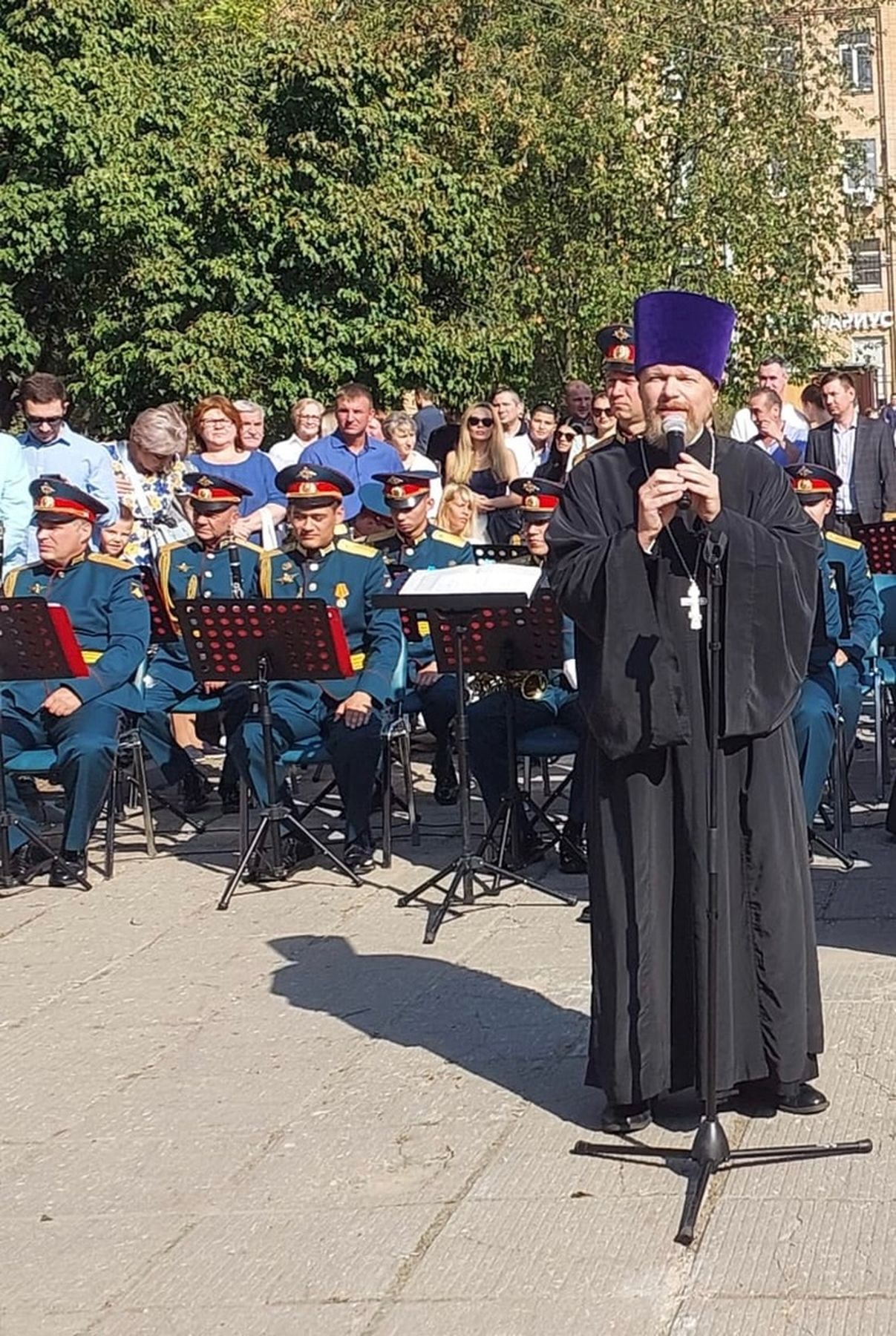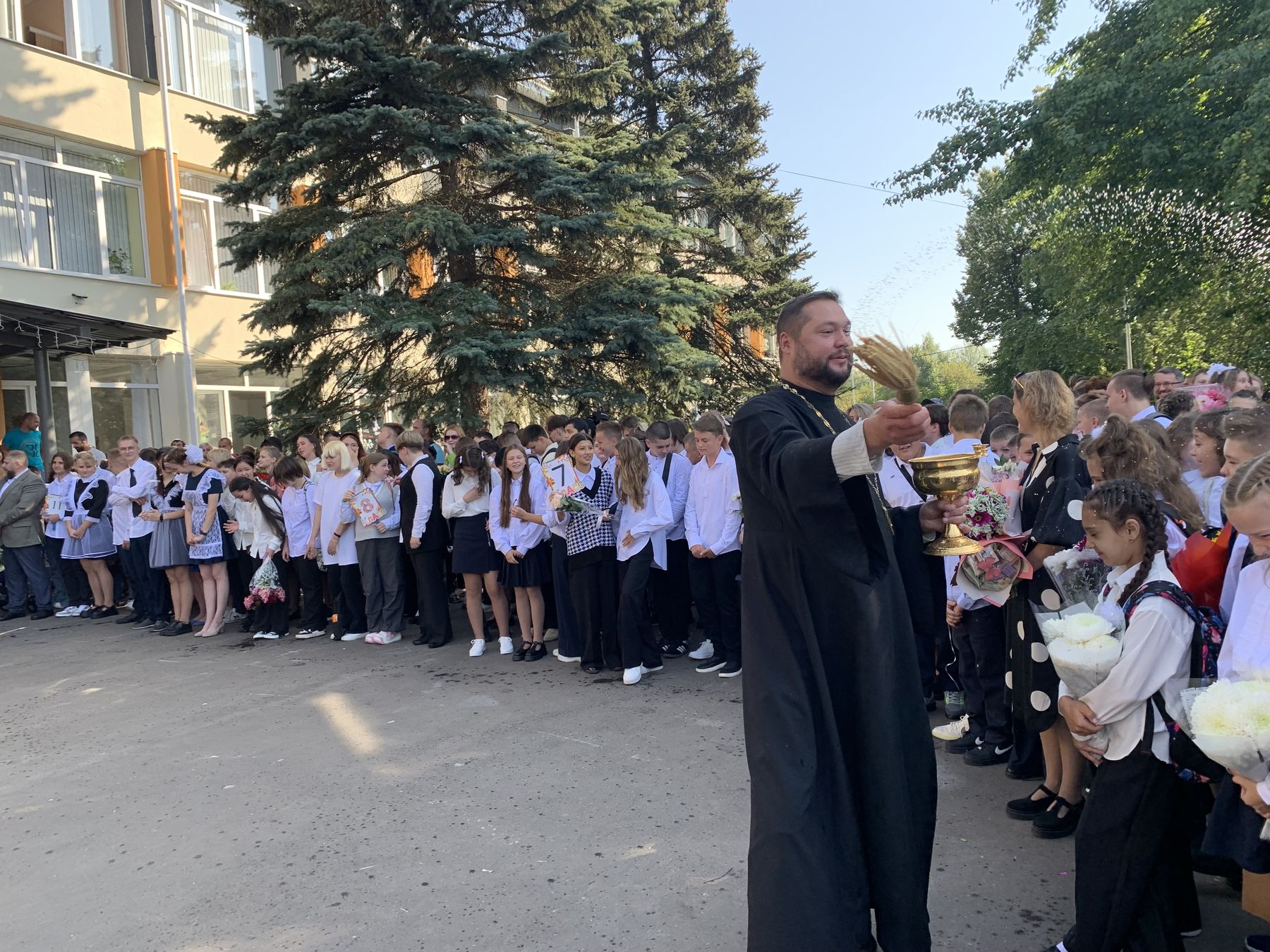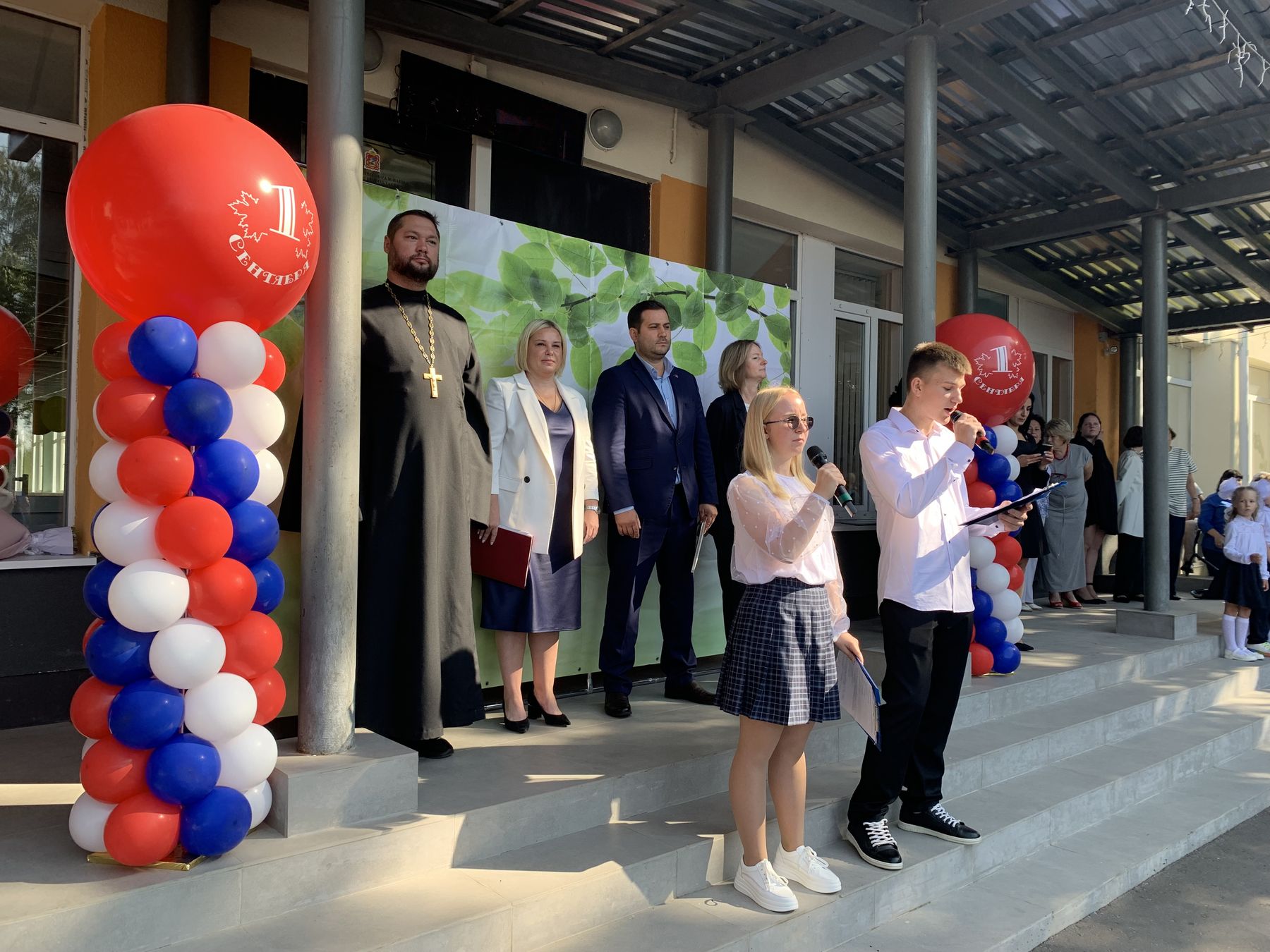 Клирик Троицкого собора г. Щёлково священник Димитрий Медведев посетил торжественную линейку в Щёлковской гимназии №6.
