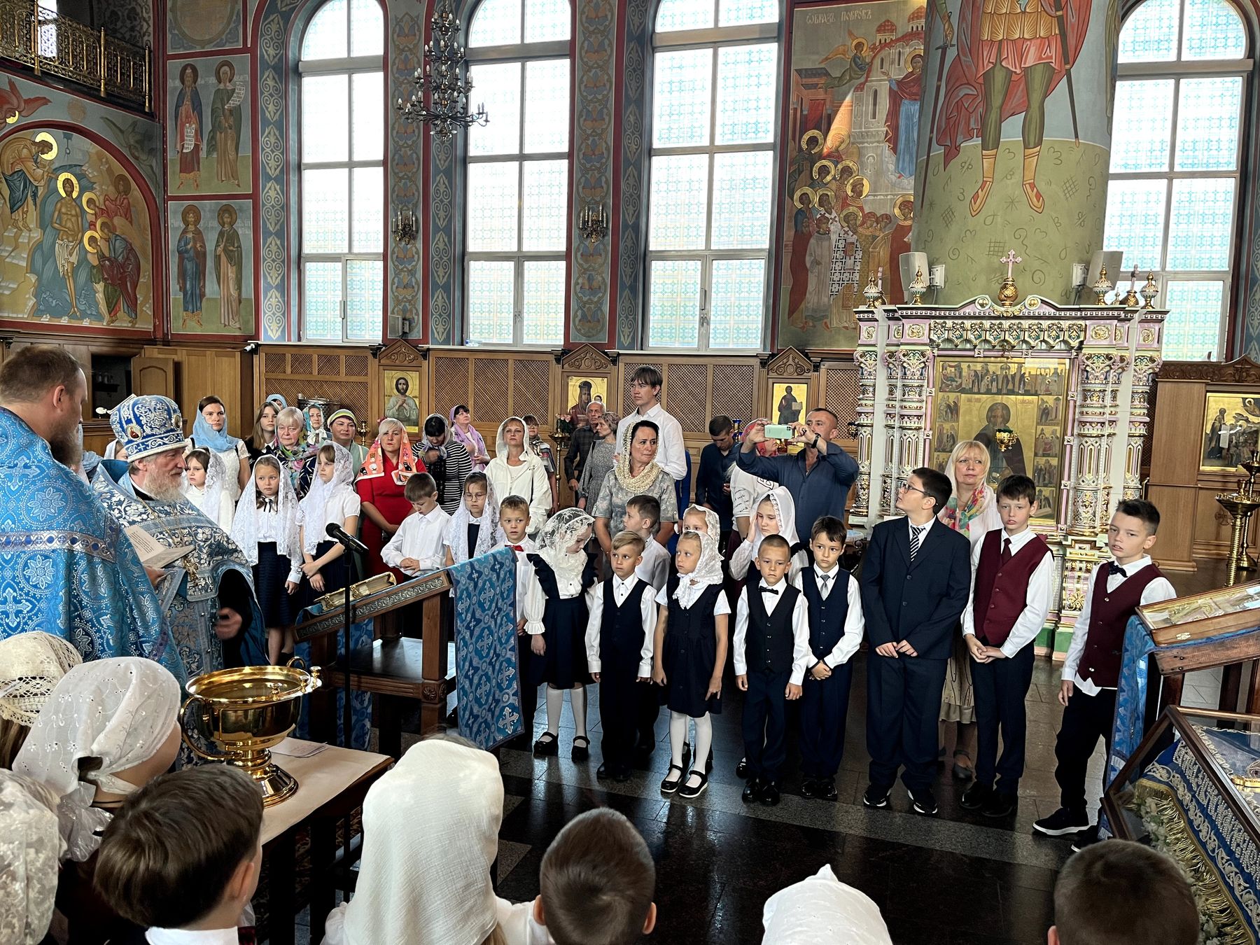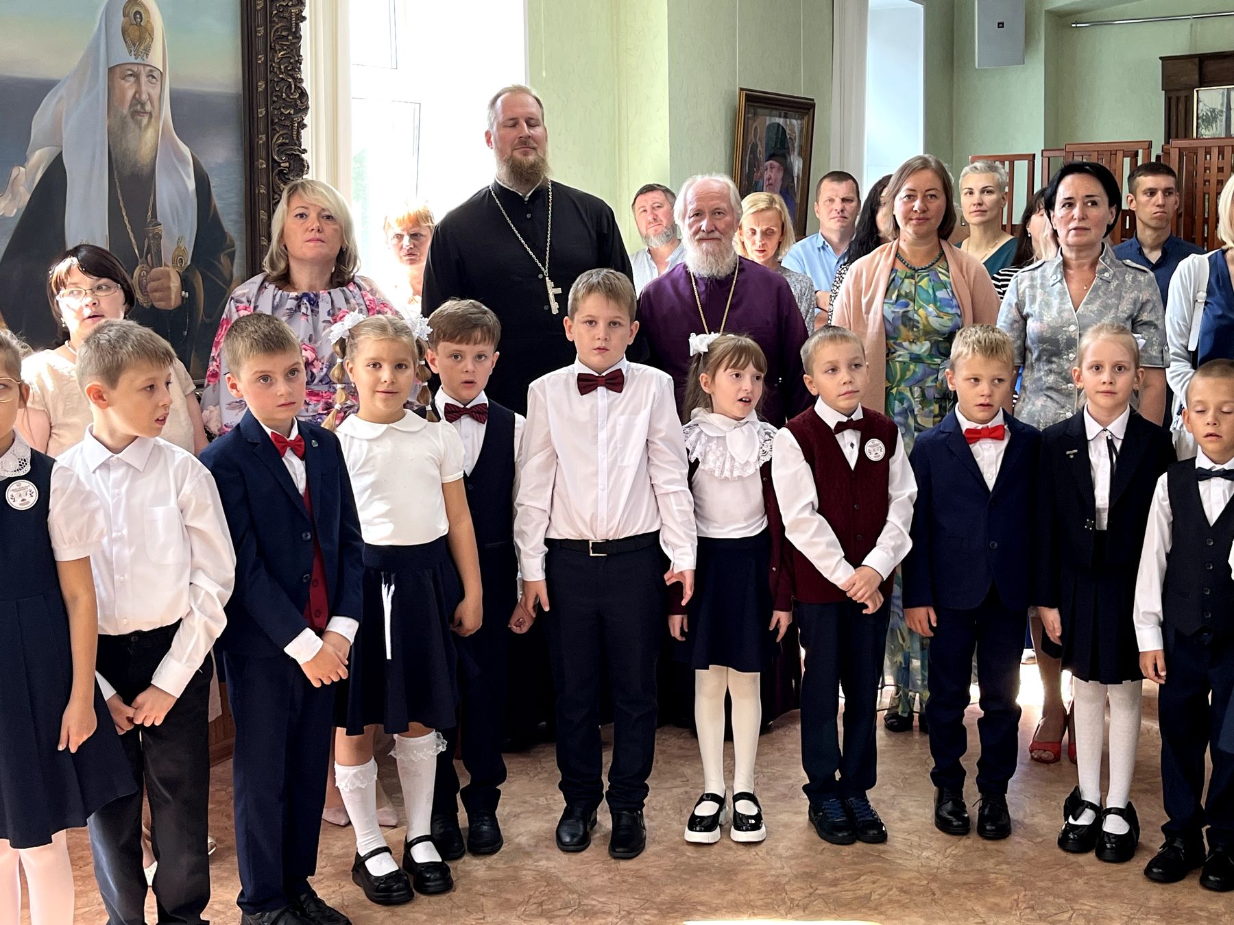 День знаний для гимназистов Православной Алексиевской гимназии начался с Молебна на начало учебного года в Троицком соборе г. Щёлково, который совершил протоиерей Андрей Ковальчук в сослужении духовника гимназии священника Павла Чекалина. После молебна отец Андрей обратился к собравшимся гимназистам, учителям и родителям со словами поздравления и напутствия.