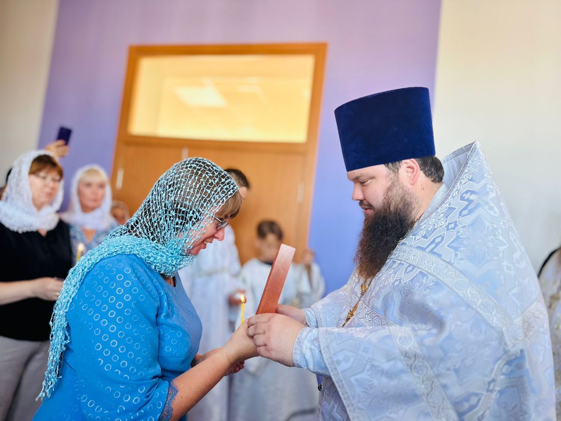 Отец Александр обратился к коллективу учреждения с приветственным словом и передал директору учреждения Г. С. Полухиной в благословение икону Спасителя.