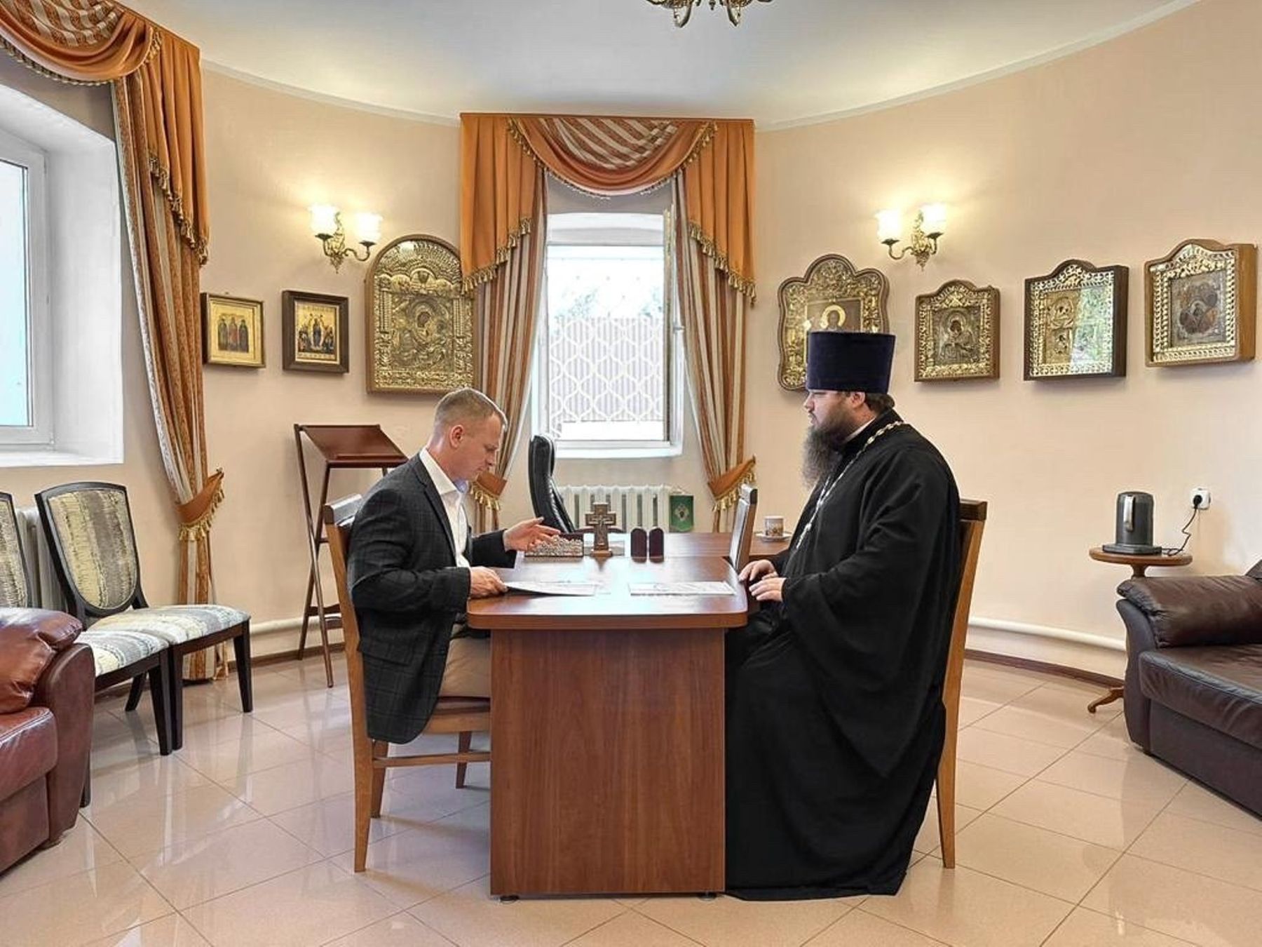 21 сентября в Казанском храме города Павловский Посад состоялась рабочая встреча благочинного церквей Павлово-Посадского округа священника Александра Анохина с заместителем главы городского округа Павловский Посад В. П. Шевелиным.