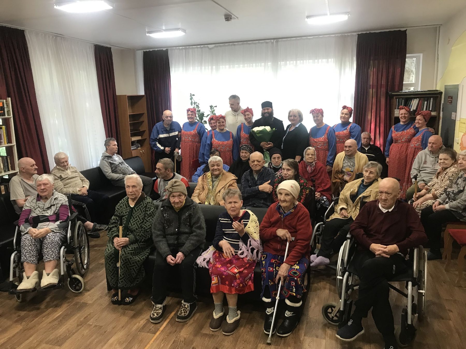 Настоятель храма мучениц Веры, Надежды, Любови и матери их Софии в Федурново священник Вячеслав Радченко и приходской хор «Молодушечки» поздравили людей пожилого возраста, пребывающих в стационарном отделении «Милосердие» для престарелых и инвалидов Комплексного центра социального обслуживания и реабилитации «Балашихинский» г. Реутова.