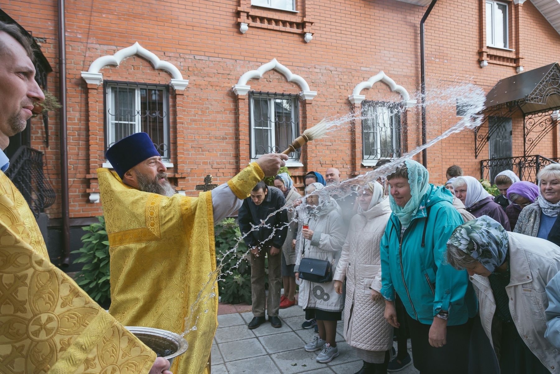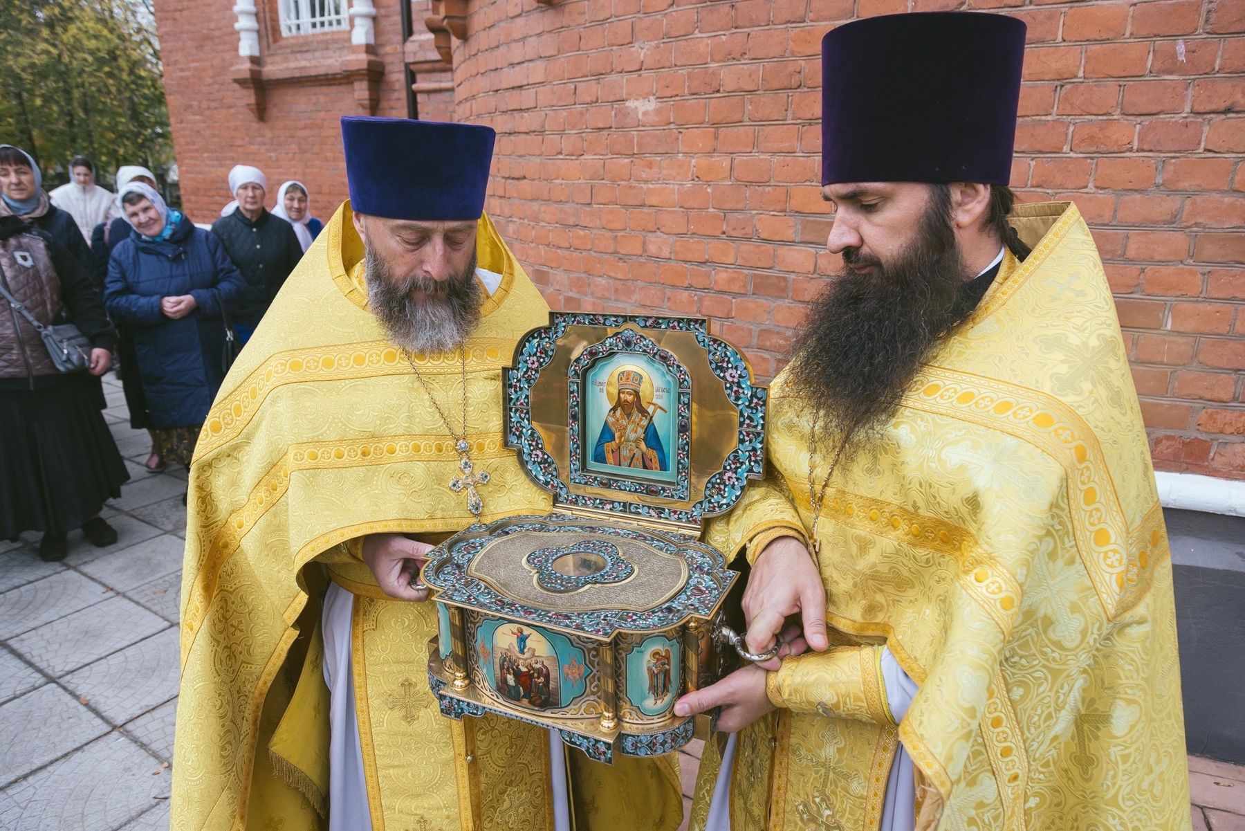 По окончании Литургии был совершён уставной крестный ход и вознесена молитва перед ковчегом с частицей святых мощей святителя Димитрия Ростовского.