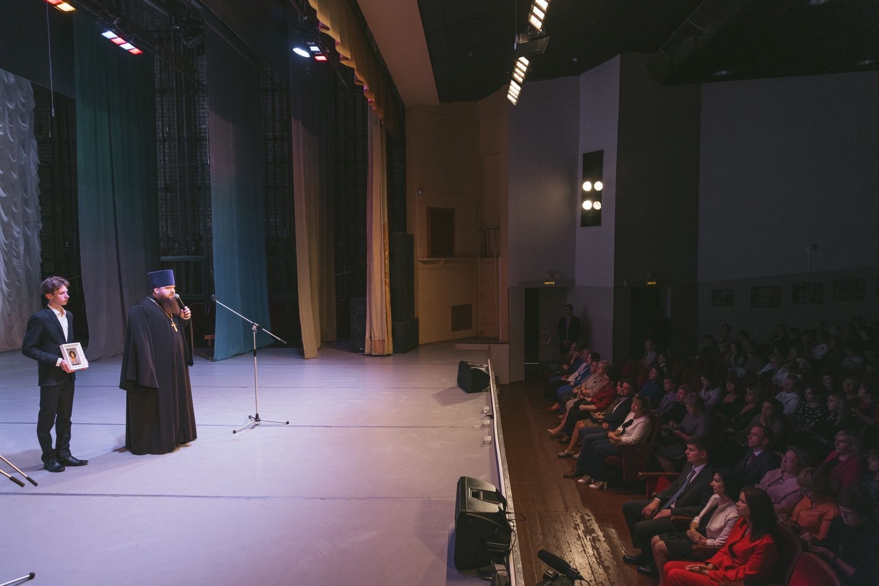 Отец Александр обратился к присутствующим со словами поздравления и преподнёс начальнику управления образования икону Спасителя.