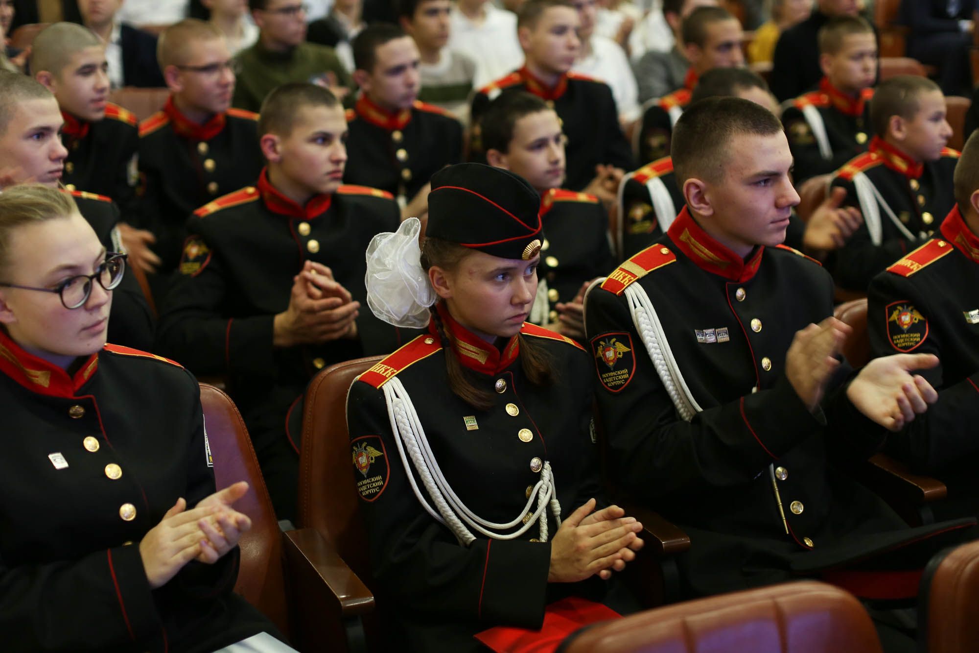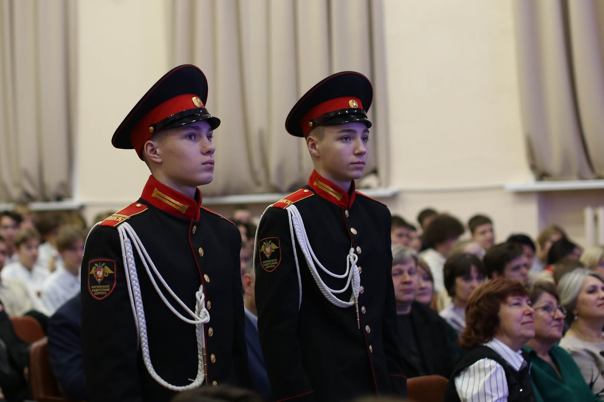 В зале собрались юноши, которым предстоит в ближайшее время отправиться к месту прохождения срочной службы, их родители, ветераны Вооруженных Сил, участники боевых действий, члены совета депутатов, руководители администрации, почётные жители Богородского округа, сотрудники военкомата.