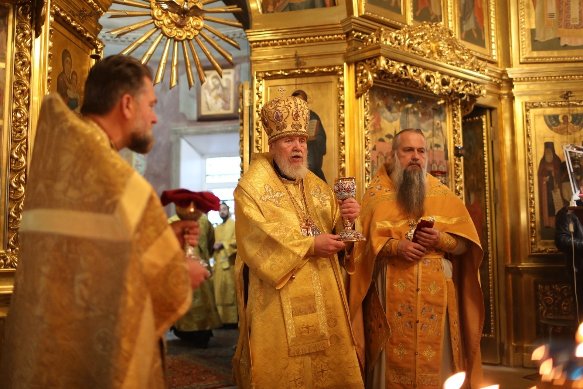 По окончании Литургии были возглашены уставные многолетия, после чего отец настоятель поблагодарил Владыку Николая за совершённое богослужение и преподнёс ему на молитвенную память икону святителя Митрофана Воронежского.