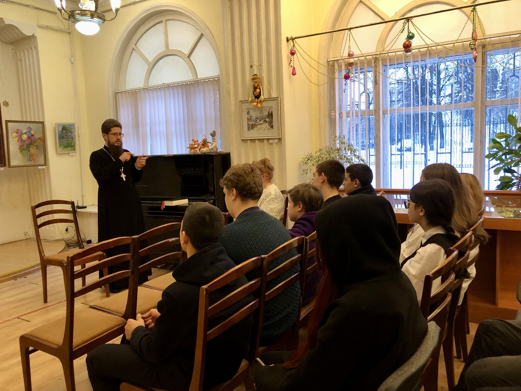 28 ноября в Культурном центре города Фрязино состоялась встреча настоятеля Державного храма наукограда священника Димитрия Третьякова со старшеклассниками школ города. Отец Дмитрий поздравил присутствующих с началом Рождествеского поста и рассказал о его смысле.