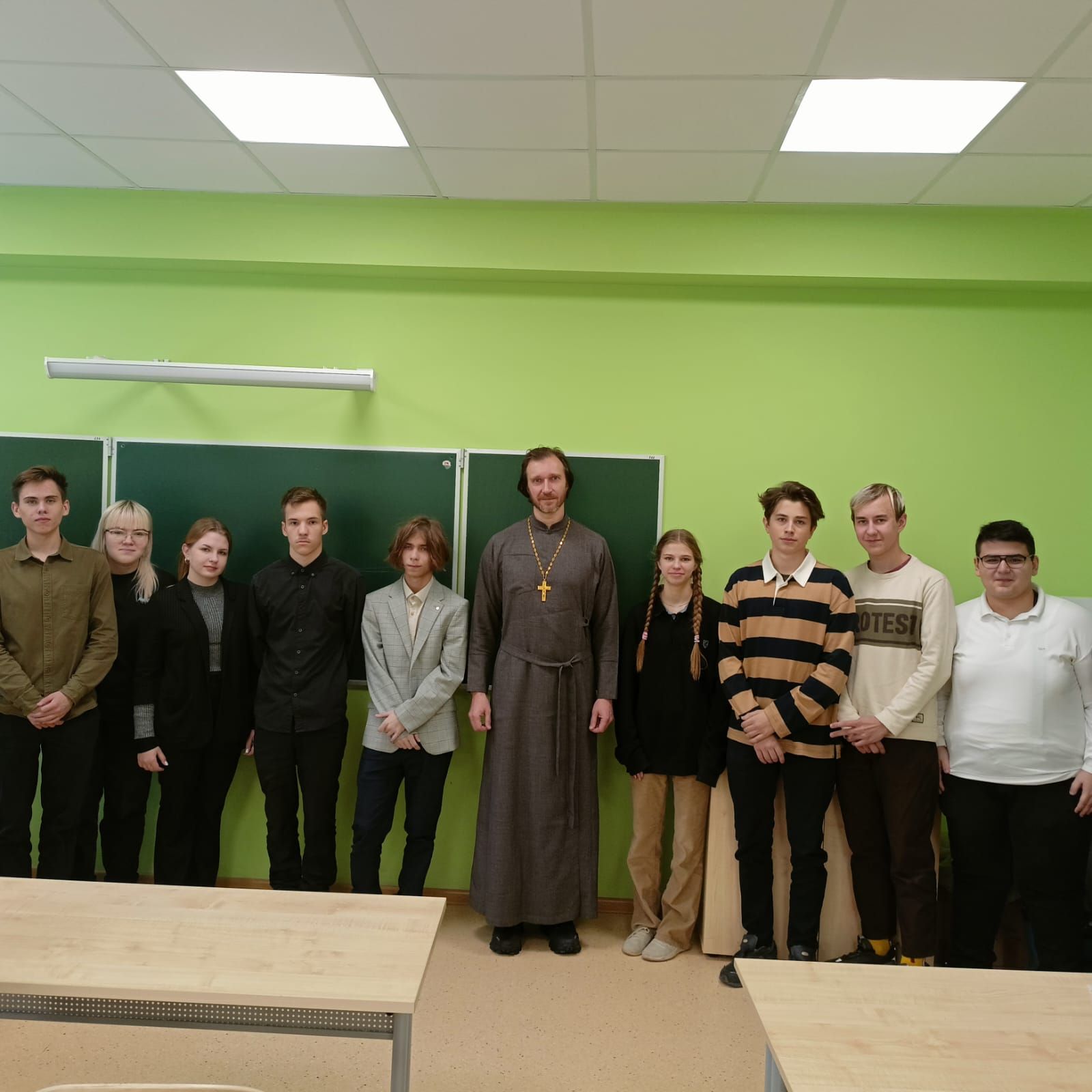 1 декабря в школе №1 города Фрязино состоялась встреча клирика Державного храма наукограда священника Владимира Тарасюка с учениками. Отец Владимир рассказал о принципах христианской нравственности, берущих свое основание в нагорной проповеди Иисуса Христа. Ребята задали интересующие их вопросы.