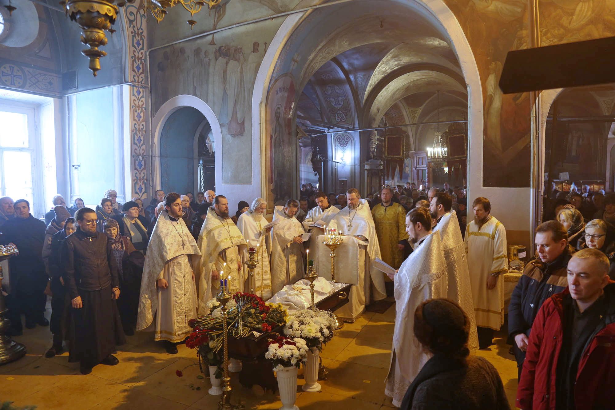 По окончании отпевания гроб с телом протоиерея Евгения Жемчугина был обнесён вокруг храма, в котором он служил без малого три десятка лет, и погребён за алтарём.