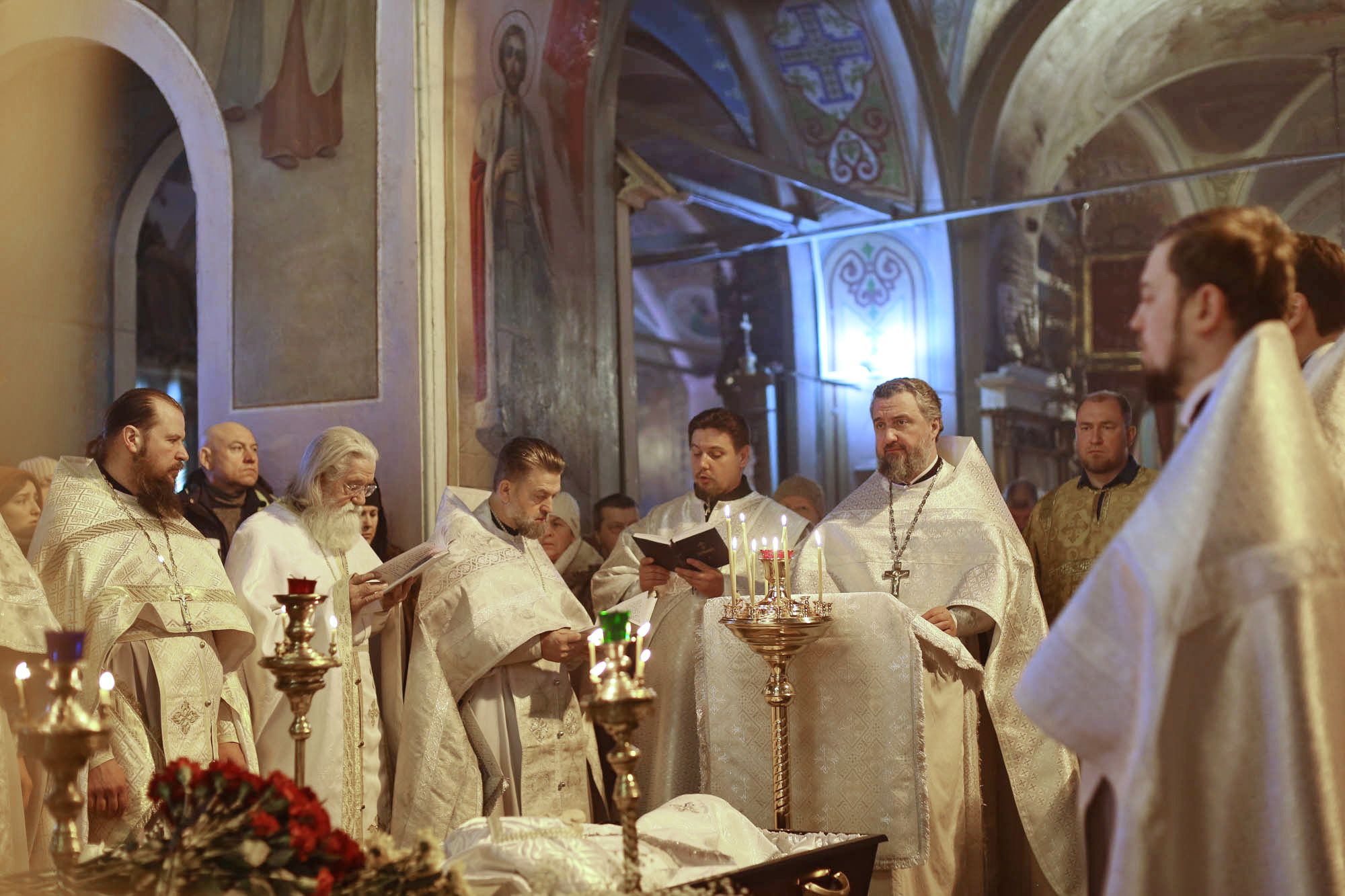 Перед началом богослужения отец Марк обратился к собравшимся с пастырским словом и зачитал соболезнование епископа Балашихинского и Орехово-Зуевского Николая в связи с кончиной протоиерея Евгения Жемчугина.