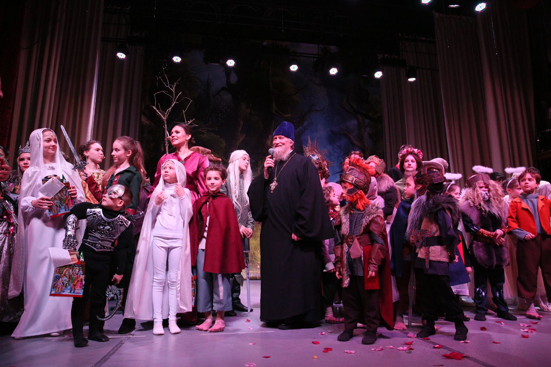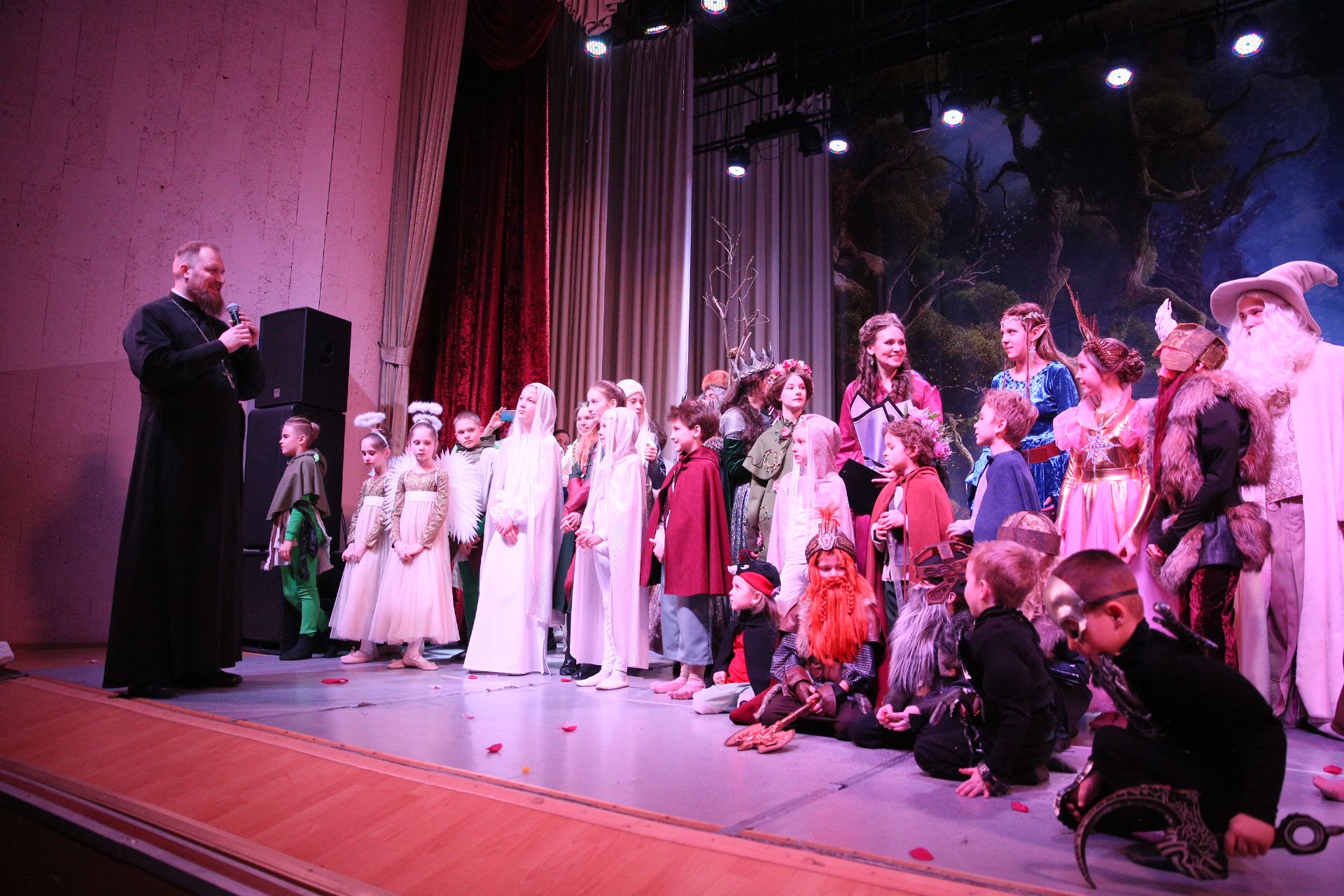 В завершение выступления духовник Алексиевской гимназии священник Павел Чекалин поблагодарили коллектив воскресной школы Ксениевского храма за выступление.